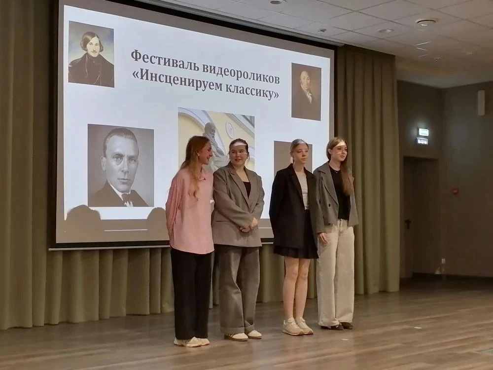 Фестиваль видеороликов «Инсценируем классику» восхитил зрителей. Ученики 10 А представили четыре яркие работы («Преступление и наказание», «Вишнёвый сад», «Война и мир», «Гроза»), а 6 Г — трогательные ролики по рассказам «Уроки французского» и «Левша», которые затем показали ученикам начальной школы.