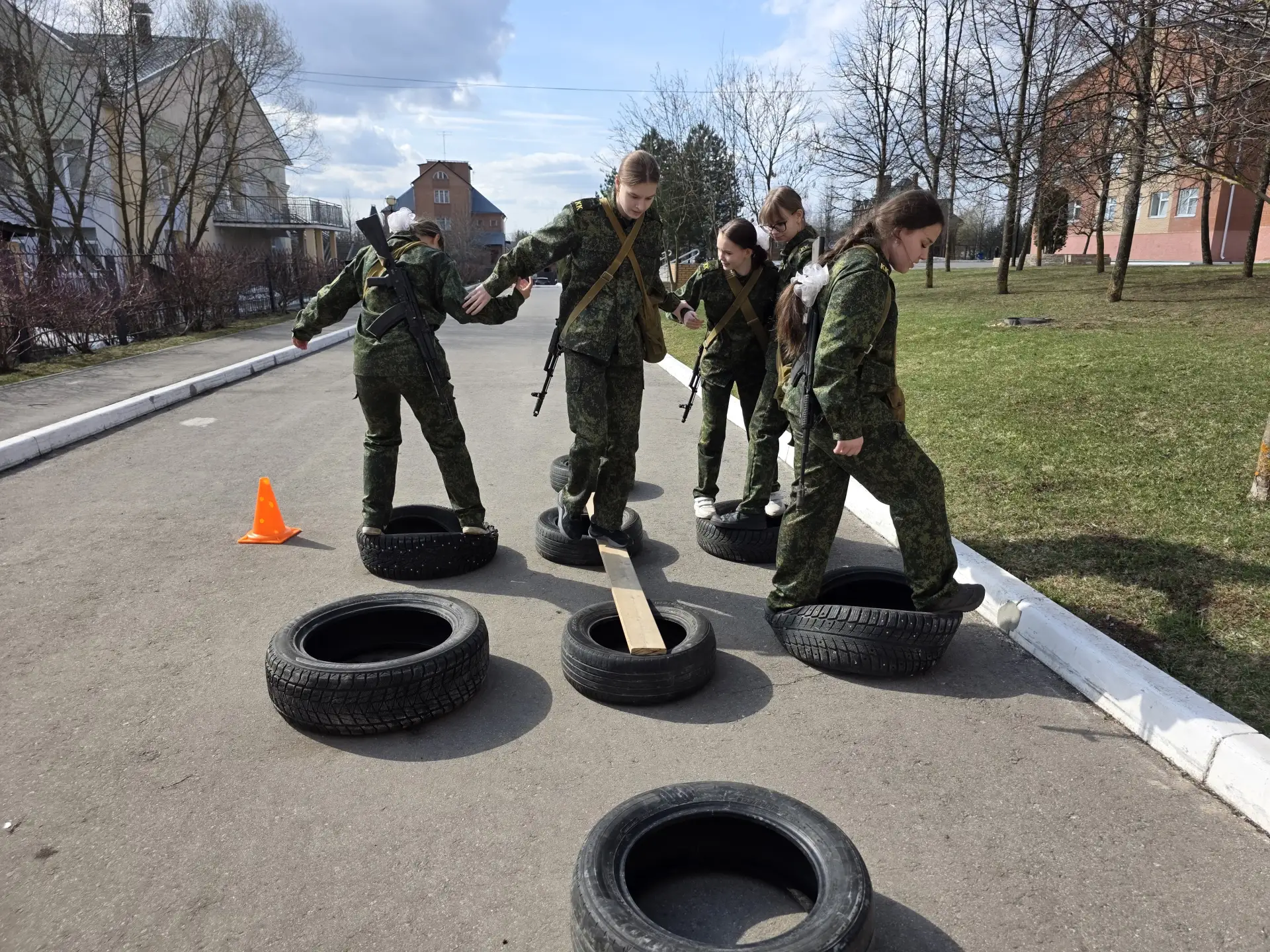 Наши «девушки в погонах» успешно справились со сборкой/разборкой автомата Калашникова, пистолета Макарова, магазина для автомата, прошли испытания «ратные страницы истории России», отжимания, «защита от оружия массового поражения», стрельба из пневматической винтовки, марш-бросок, передача информации на расстоянии.
