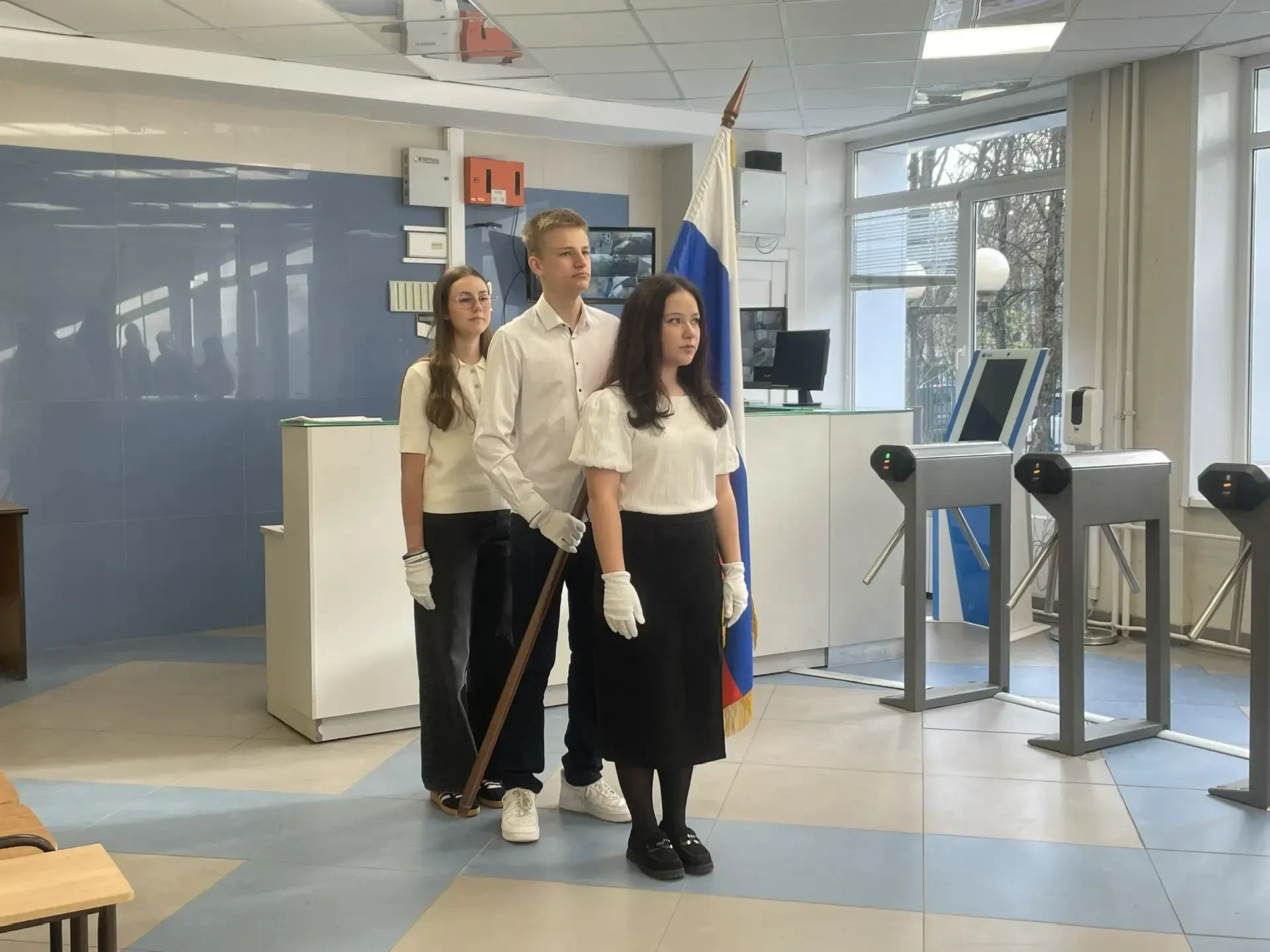 Утро началось с торжественной линейки. Эта церемония всегда напоминает нам о единстве нашей большой страны и гордости за наше Отечество.
