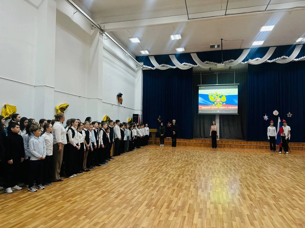 Сегодня наше утро началось с торжественной и значимой церемонии — выноса Государственного флага Российской Федерации и исполнения гимна 🎶🇷🇺