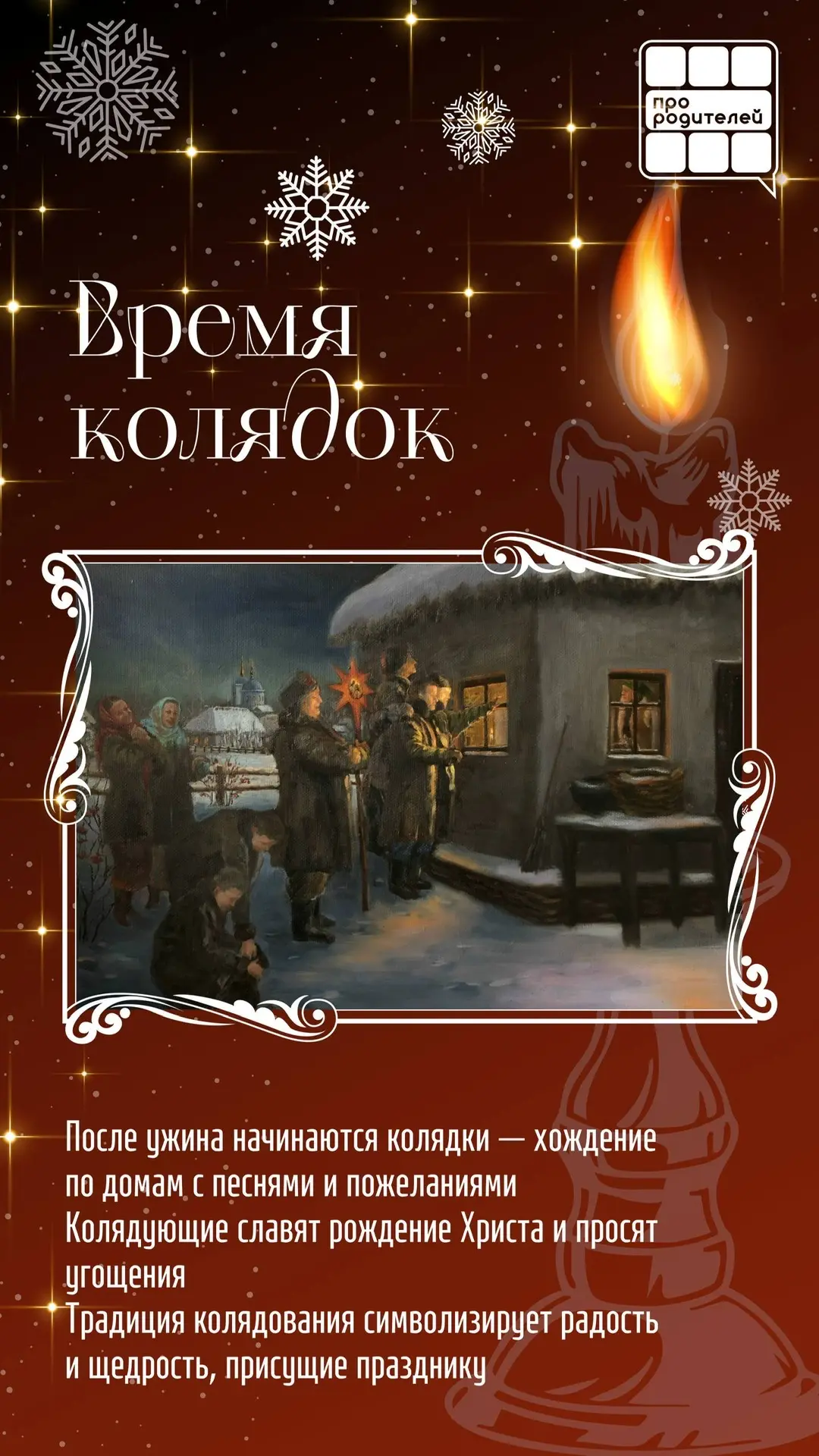 Команда «Компаса воспитания» подготовила для вас информативные карточки, которые помогут погрузиться в мир традиций и истории этого волшебного дня. Обязательно поделитесь этими знаниями с детьми, расскажите им о значении Сочельника и передайте тепло семейных традиций!