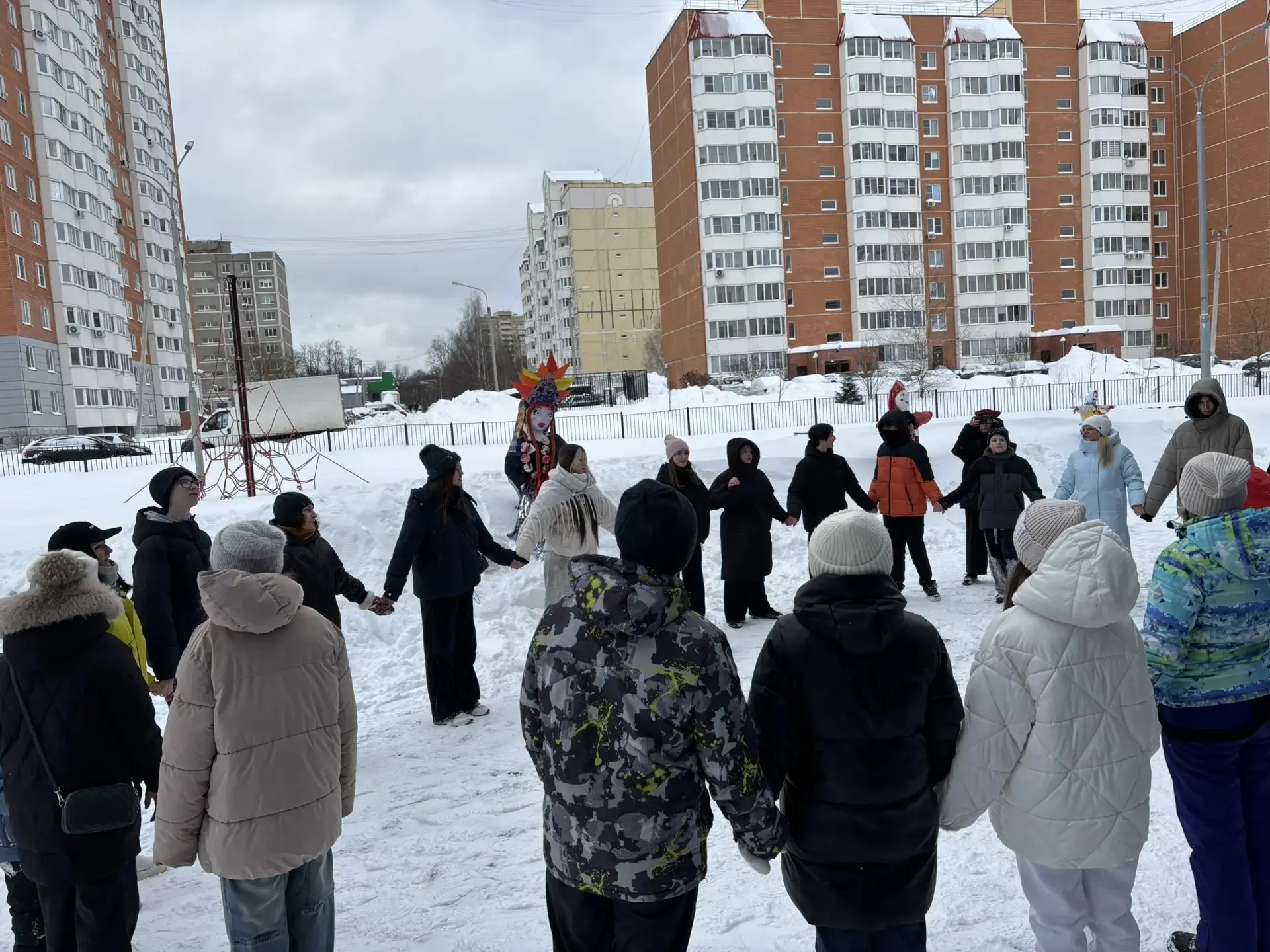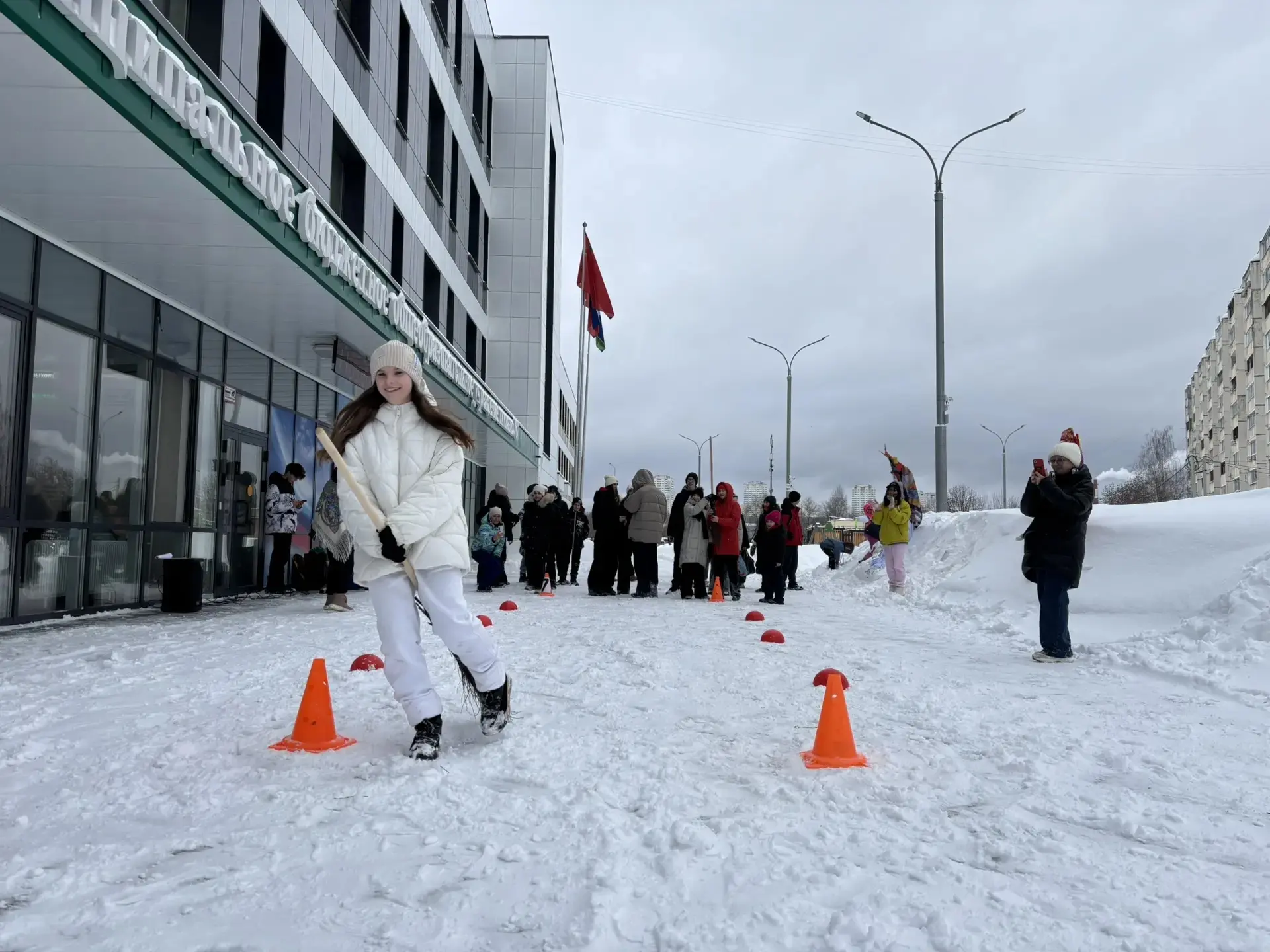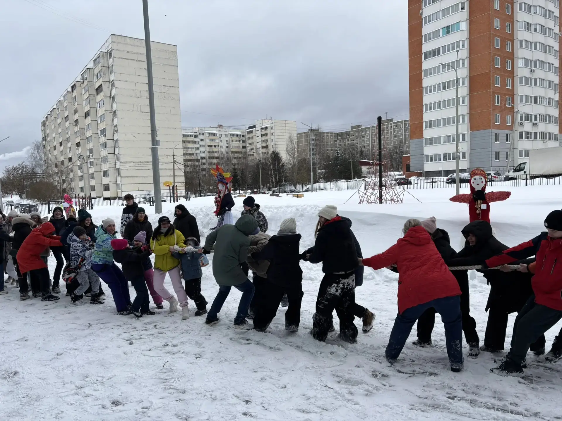💥Весёлые зимние игры. Участники проявили ловкость, силу и смекалку в зимних забавах: метании валенок, соревнованиях на метлах, перетягивании каната, веселом хороводе среди Масленичных кукол, подготовленными различными классами.