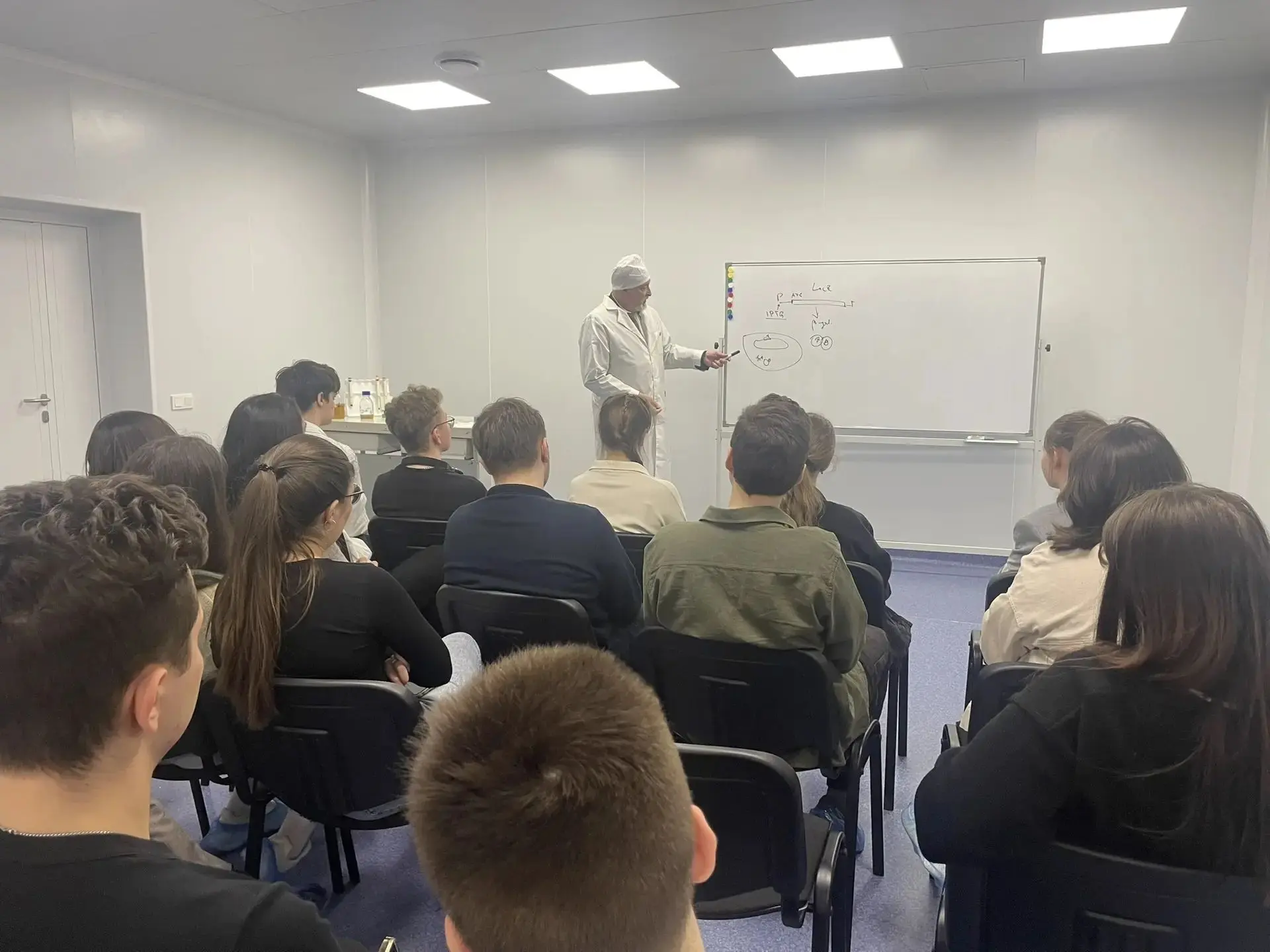 Лекция стала частью образовательного цикла, организованного для будущих биотехнологов на базе ФКП «Щелковский биокомбинат» и ВНИТИБП. Ранее студенты уже побывали с экскурсией в лабораториях иммунологии, молекулярной биологии и вирусологии, где познакомились с инновационными методами исследований и современным оборудованием.