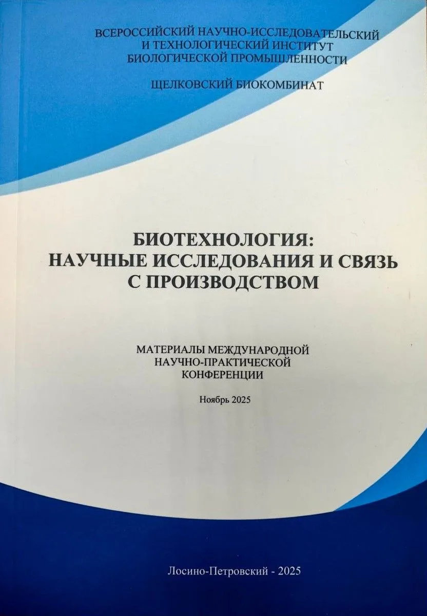 Сборник «Биотехнология: научные исследования и связь с производством», под редакцией академика РАН А.Д. Забережного, составленный по материалам Международной научно-практической конференции, организованной ФГБНУ «Всероссийский научно-исследовательский и технологический институт биологической промышленности» совместно с ФКП «Щелковский биокомбинат», за 2025г. опубликован на портале https://elibrary.ru