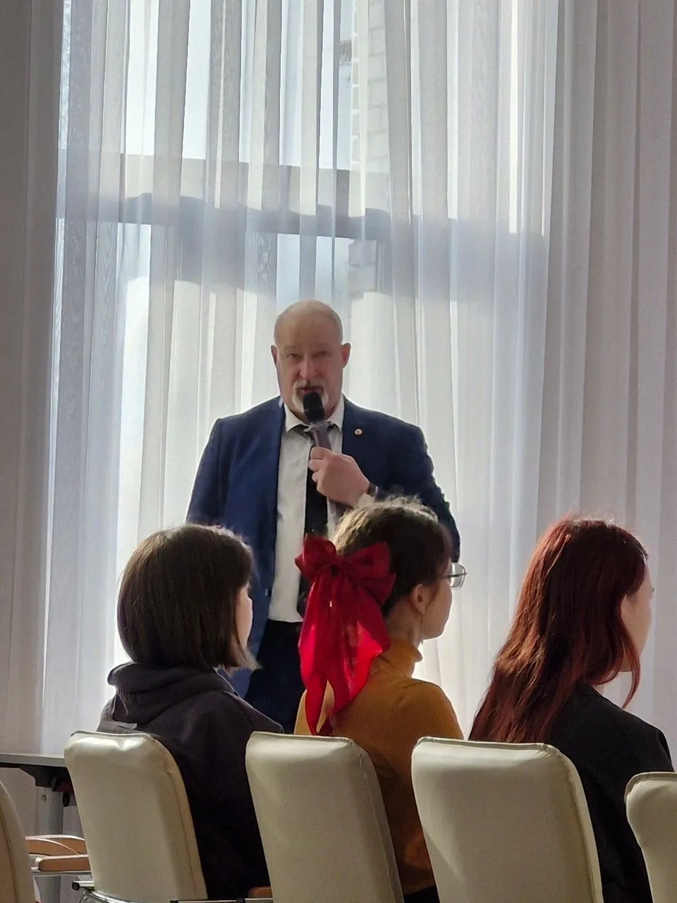 Первый проректор Виктор Владимирович Степанишин рассказал о своей научной карьере и зарядил студентов мотивацией и теплыми пожеланиями.