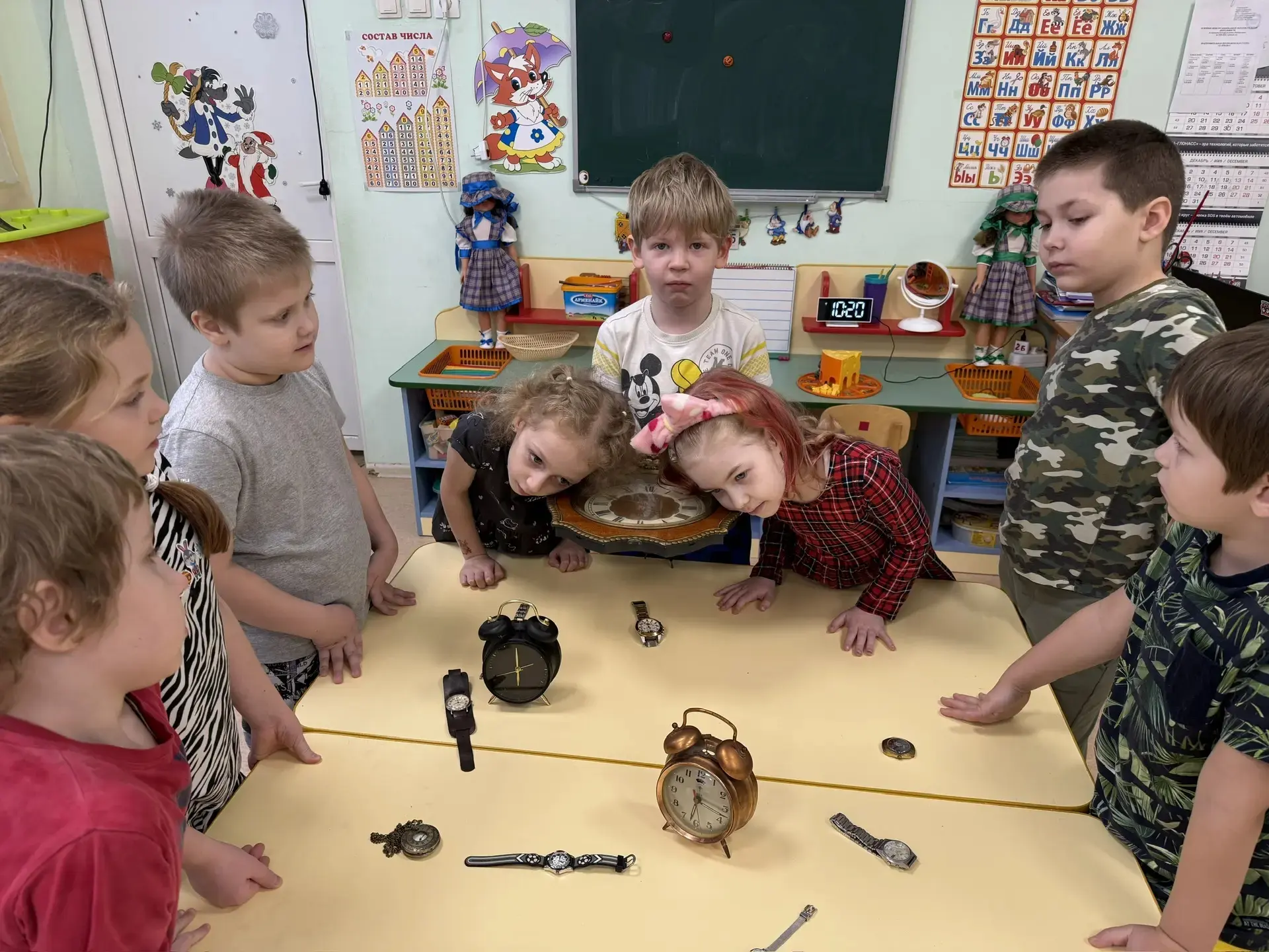 Дети рассмотрели устройство механических часов, послушали их тиканье и сравнили с нашими солнечными моделями.