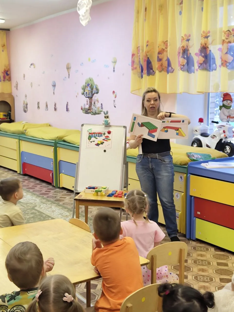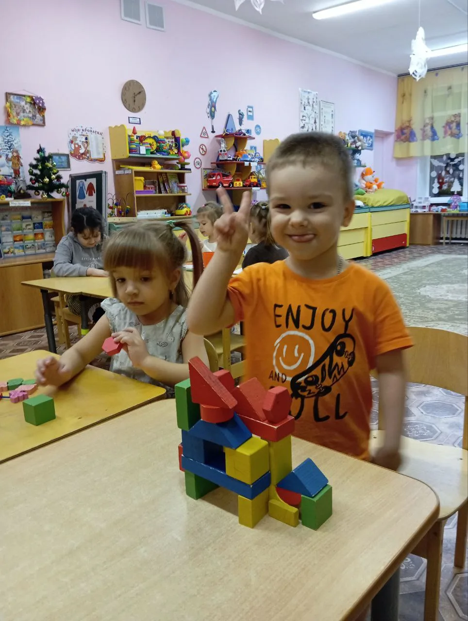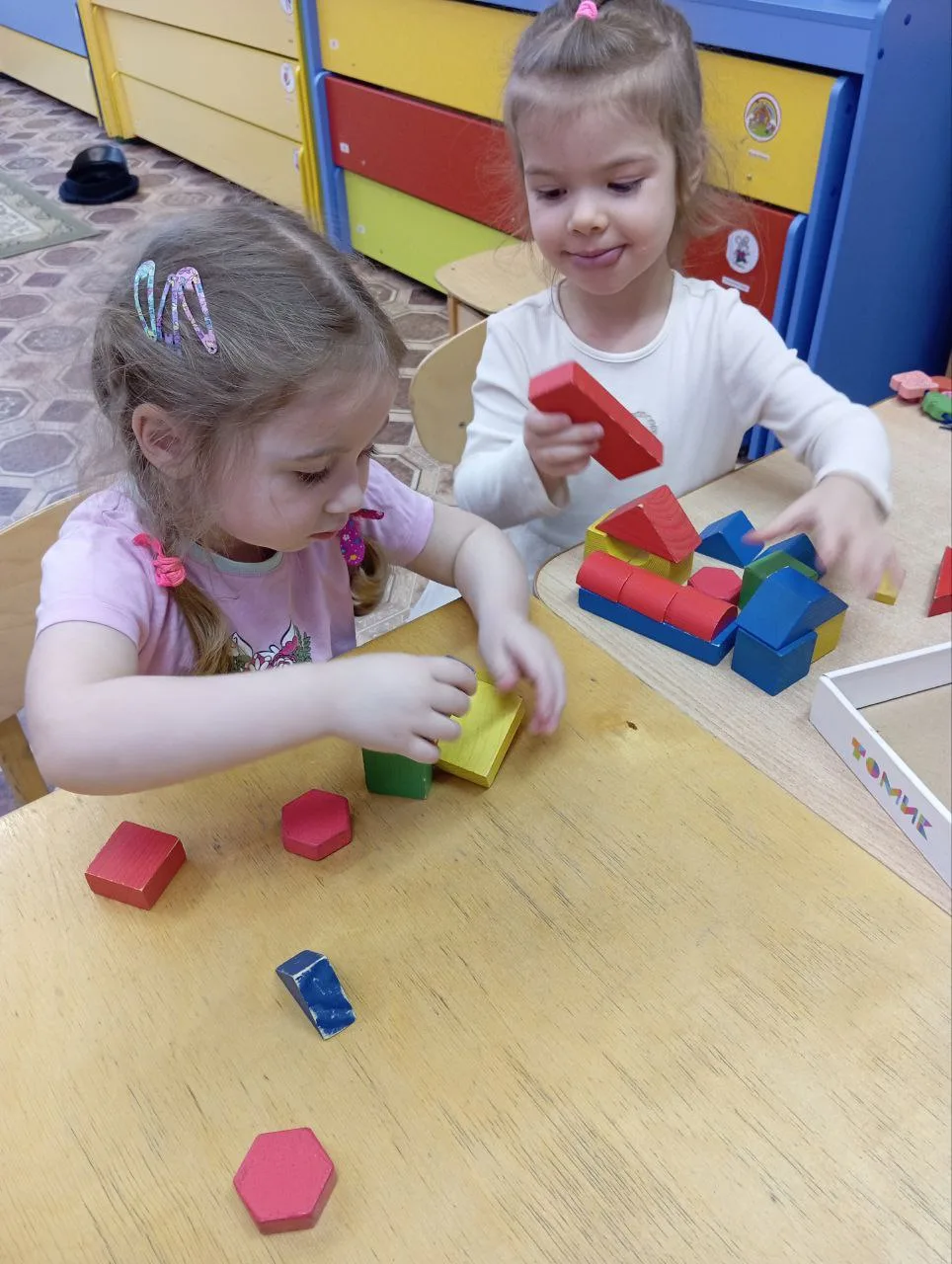 Закрепляли формы и цвета деталей. В игре строили самостоятельно постройки в свободной форме.
