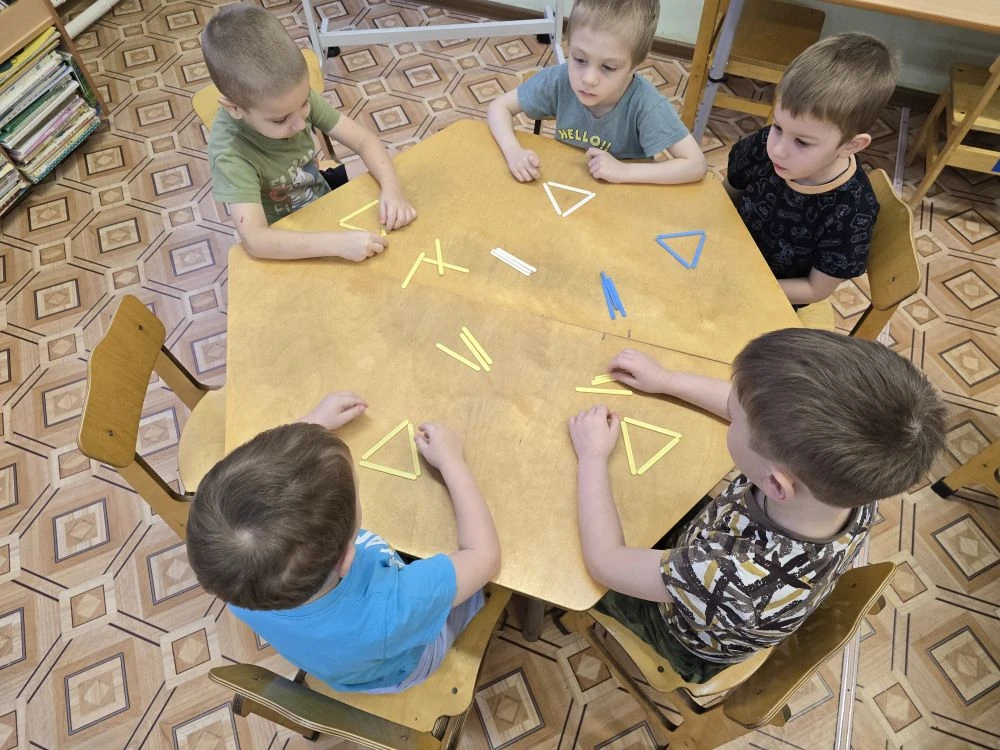 Совершенствовали умение счета в пределах пяти; умение различать геометрические фигуры по размеру и форме; упражнялись в порядковом счете.Продолжаем развивать
