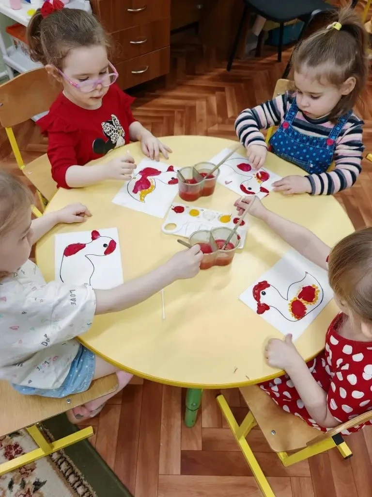 Наши маленькие творцы отправились в увлекательное путешествие по миру исконно русского искусства. В руках ребят оживали сказочные узоры Хохломы — золотом и алым цветом расцвели тарелочки и ложки, словно по волшебству! 🪄 А сколько радости было, когда знакомились с веселой Дымковской игрушкой! Эти барыни, индюки и лошадки своими яркими боками заставили улыбнуться каждого.