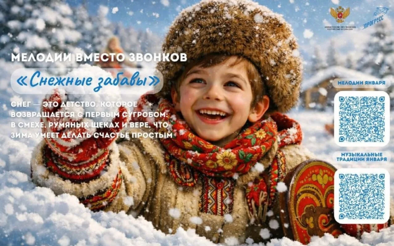 Рады сообщить: наша школа принимает участие в масштабном проекте Минпросвещения России «Музыка вместо звонков»! В январе 2026 года привычные школьные звонки сменились чудесными мелодиями, посвящёнными зимним праздничным традициям и классическим русским забавам.