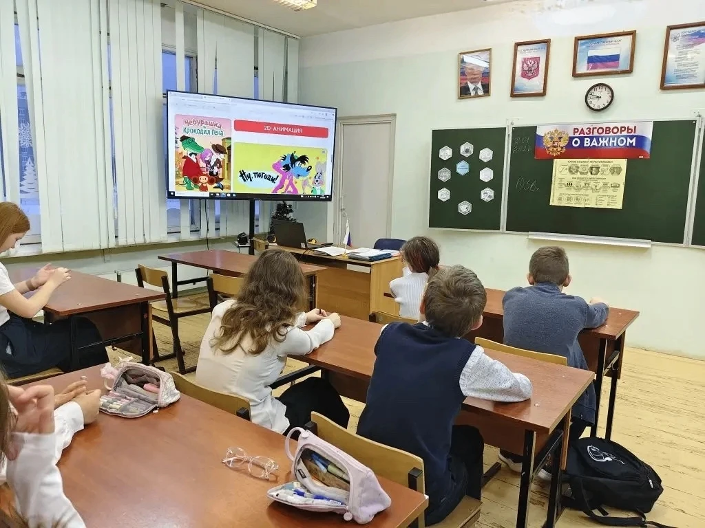 Ученики погрузились в мир анимации, узнали о технологиях создания мультфильмов и выполнили интерактивные задания. Ребята активно участвовали в дискуссии, рассказывали о своих любимых мультгероях и обсуждали, чему учат нас добрые истории на экране. Разговор получился по-настоящему творческим и познавательным!