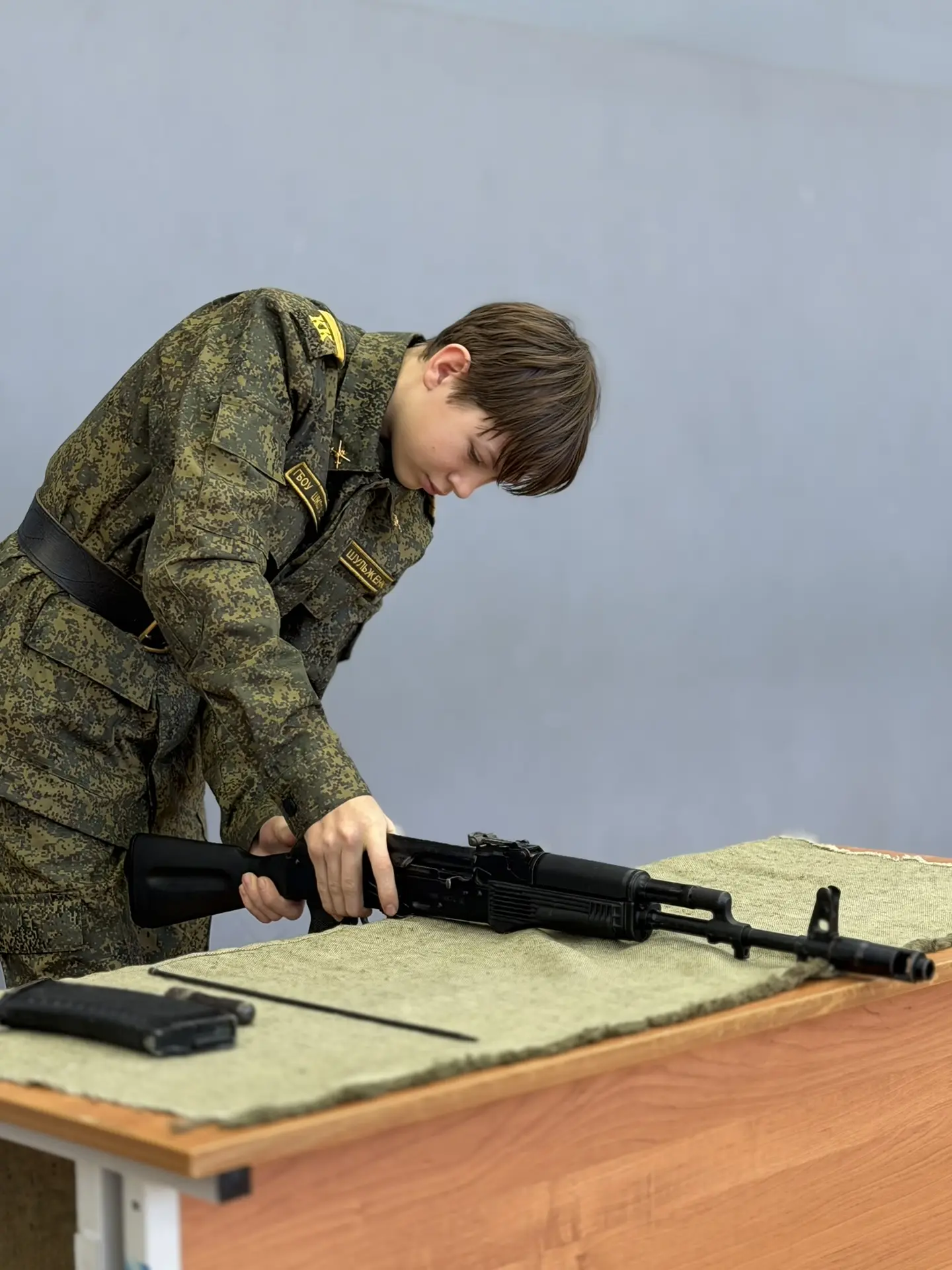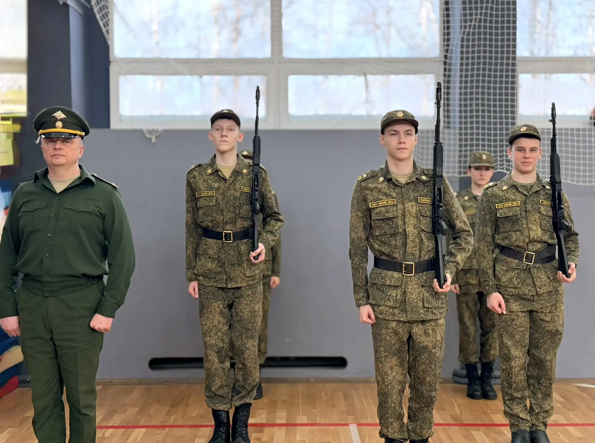 📌В честь праздника наши кадеты провели мастер‑классы для учеников школы. Ребята продемонстрировали сборку и разборку автомата, включая магазин, показали, как правильно надевать общевойсковой защитный комплект (ОЗК), а затем выполнили элементы строевой подготовки. Такие мероприятия способствуют популяризации кадетского движения среди школьников и формированию уважения к воинской дисциплине.