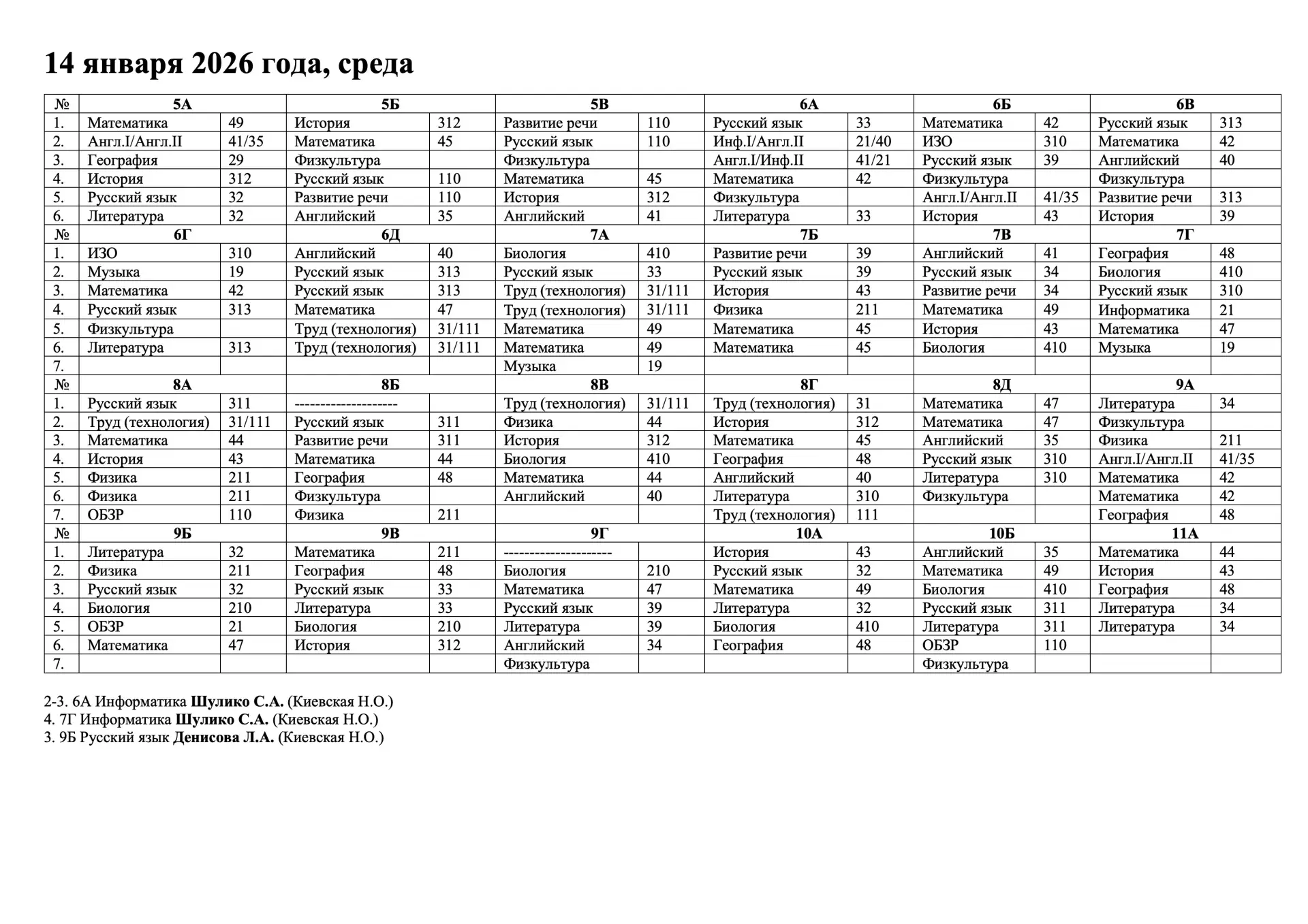 ⚡Расписание учебных занятий 5–11 классов на 14 января (с изменениями)