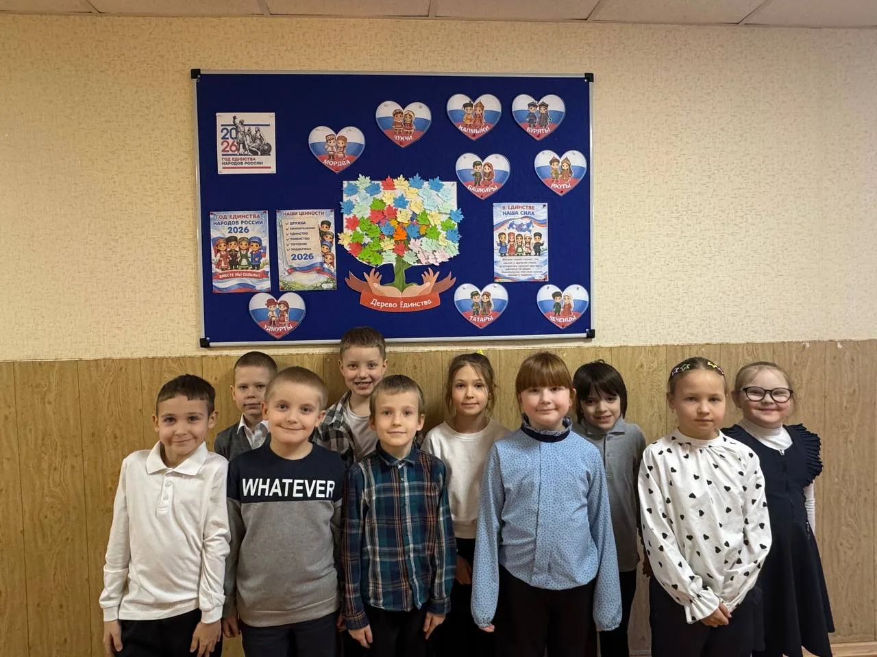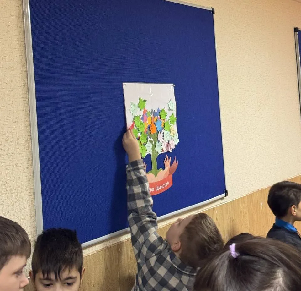 В завершении мероприятия участники произнесли Клятву Единства и оформили стенд «Дерево единства», на который прикрепили листочки с синонимами слову «Единство».