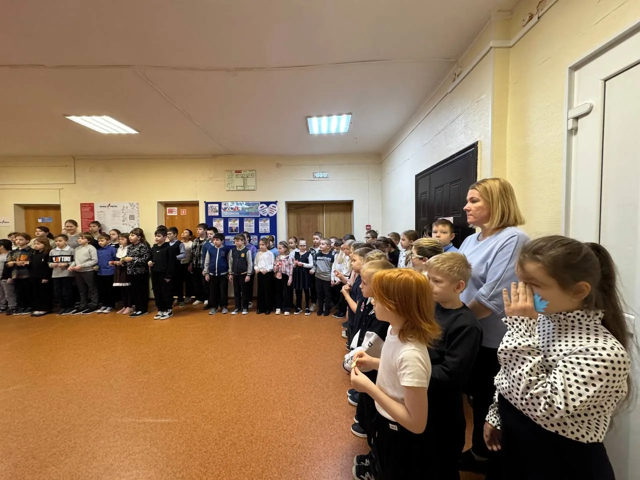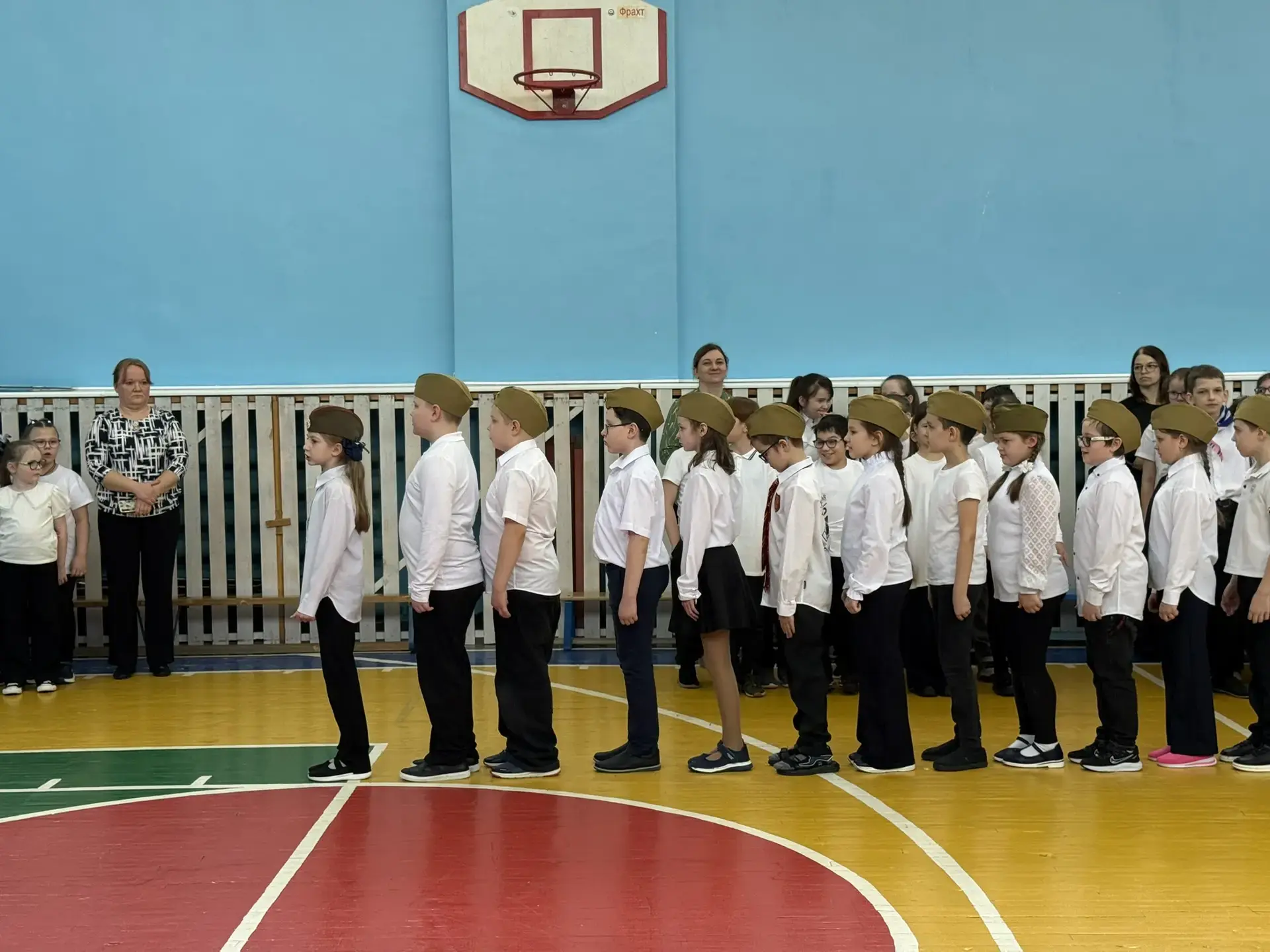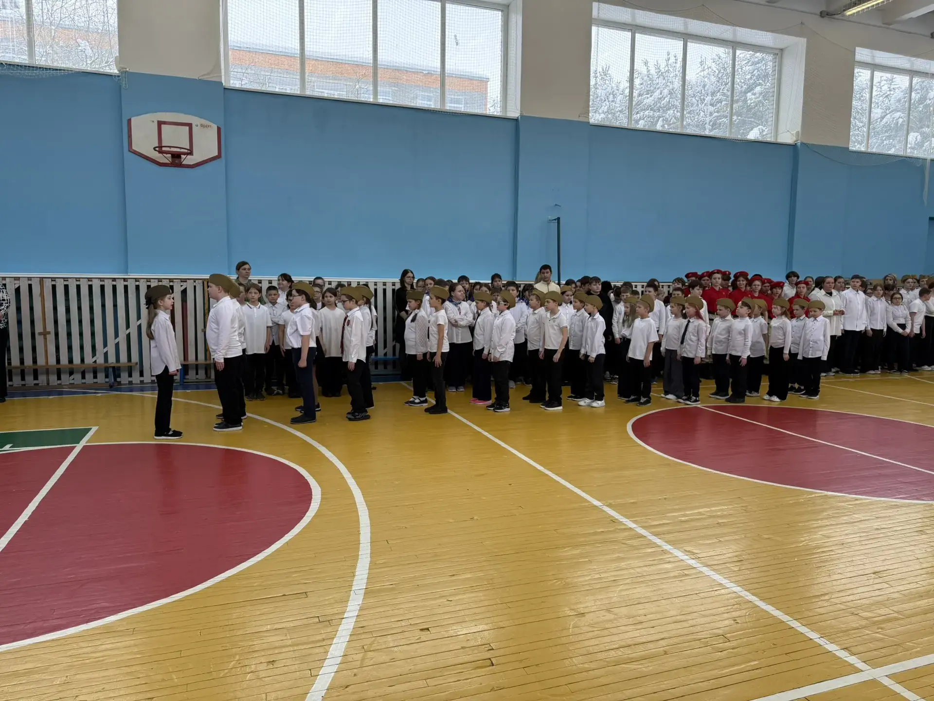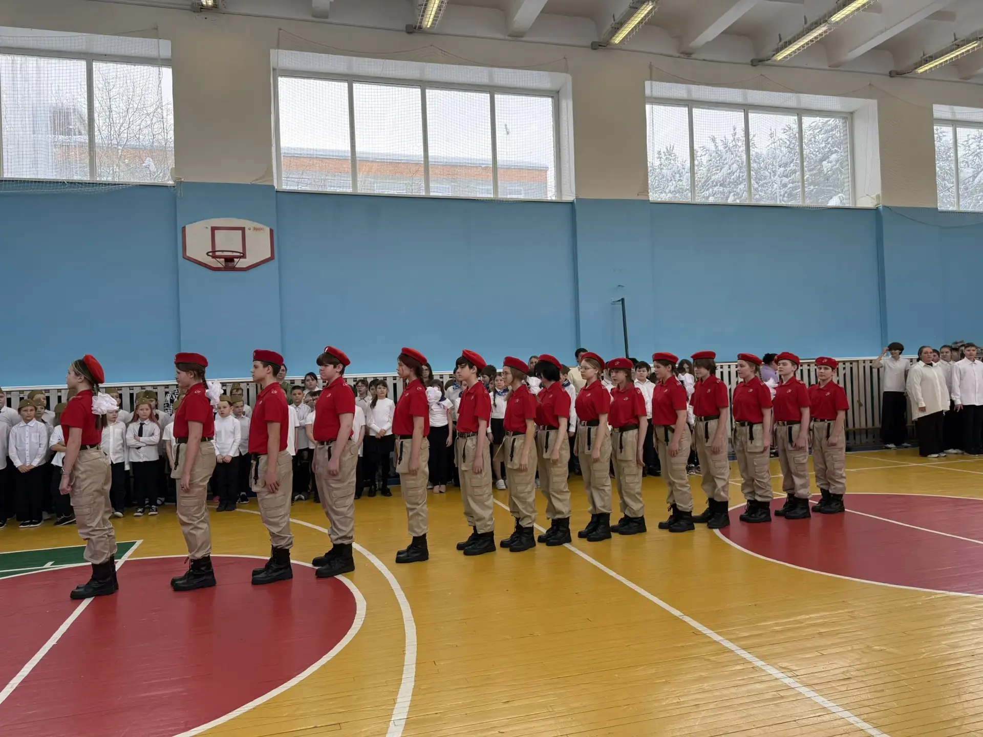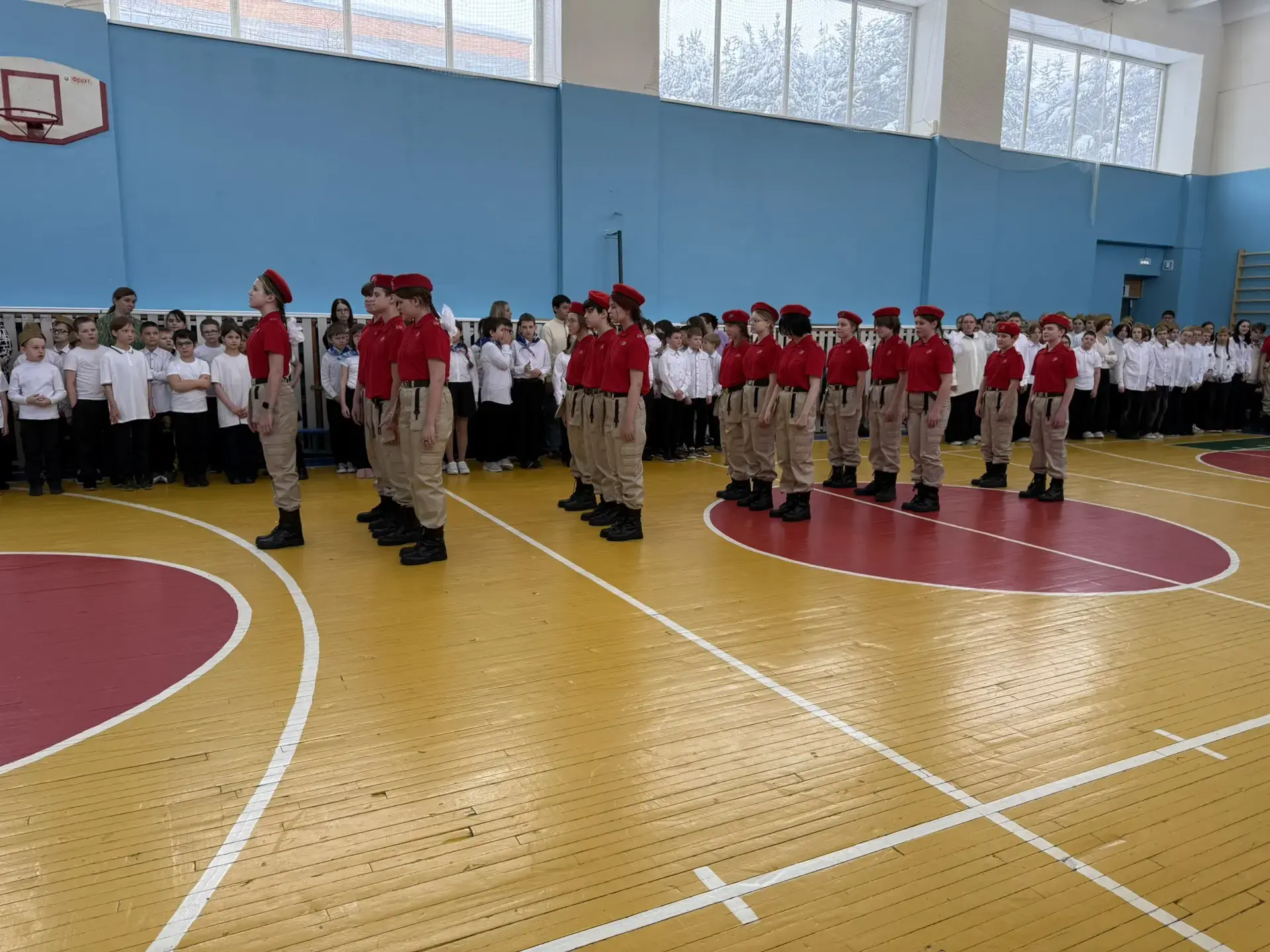 Ученики с гордостью маршировали по залу, исполняя военные песни. Особо хочется отметить командиров отрядов — именно от их громкого голоса и уверенности зависела синхронность всей команды.