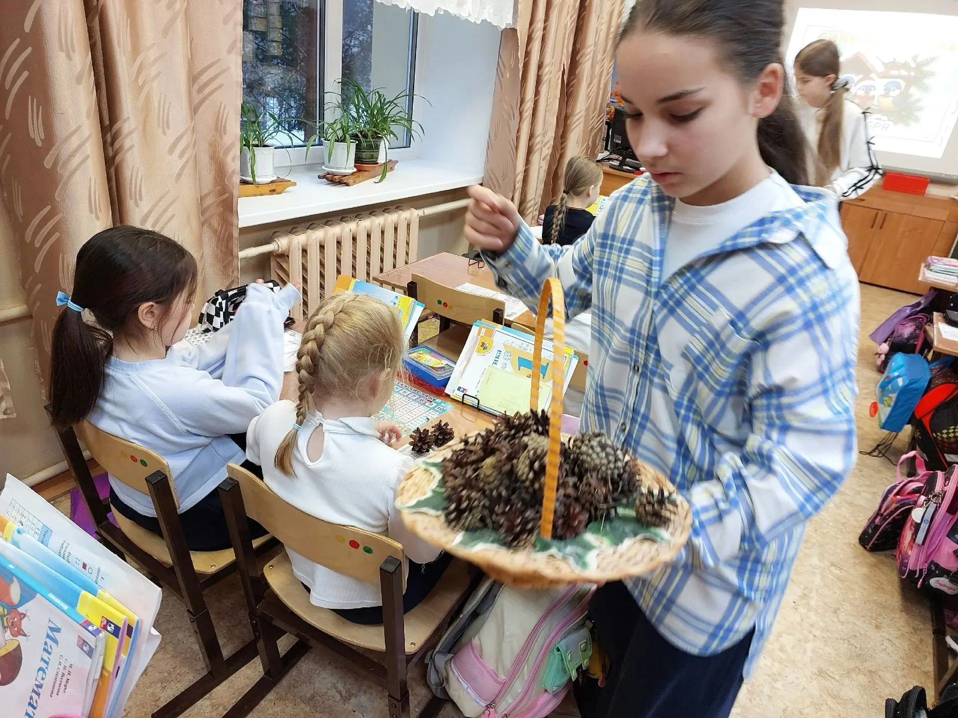 Орлята-экологи 1В класса МБОУ СОШ 4 изготовили кормушки для птиц из природных материалов и развесили их в районе школы и в парке. Ещё осенью ребята собрали шишки, засушили ягоды. А наставники, учащиеся 5В класса, провели мастер-класс и помогли ребятам изготовить кормушки. Теперь птицам не страшны лютые морозы! Кушай, птичка!