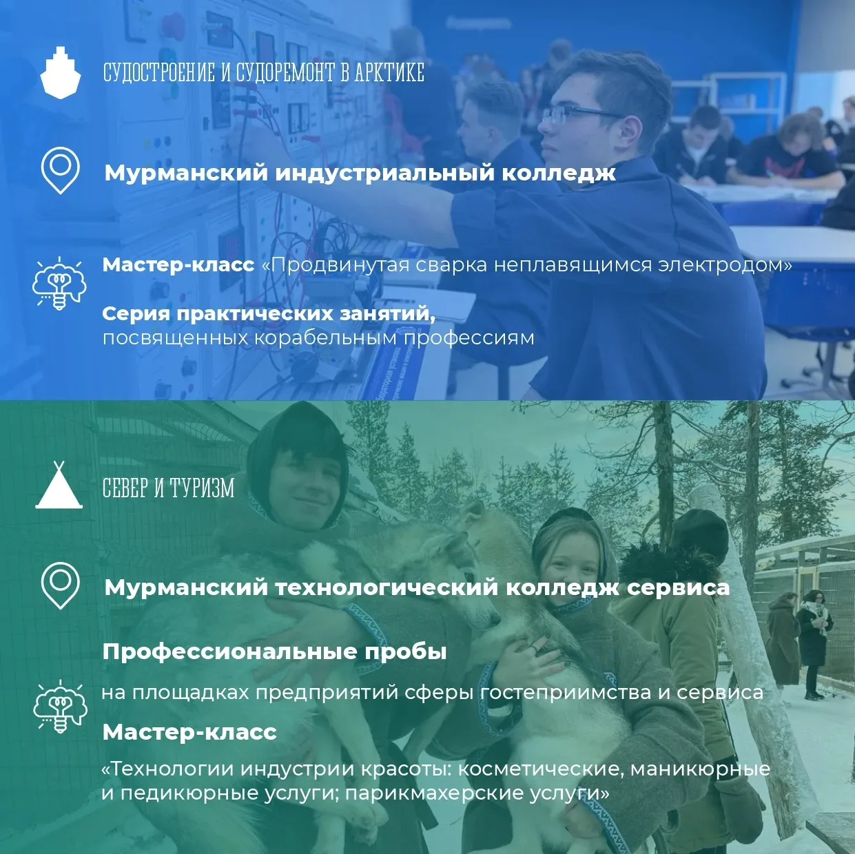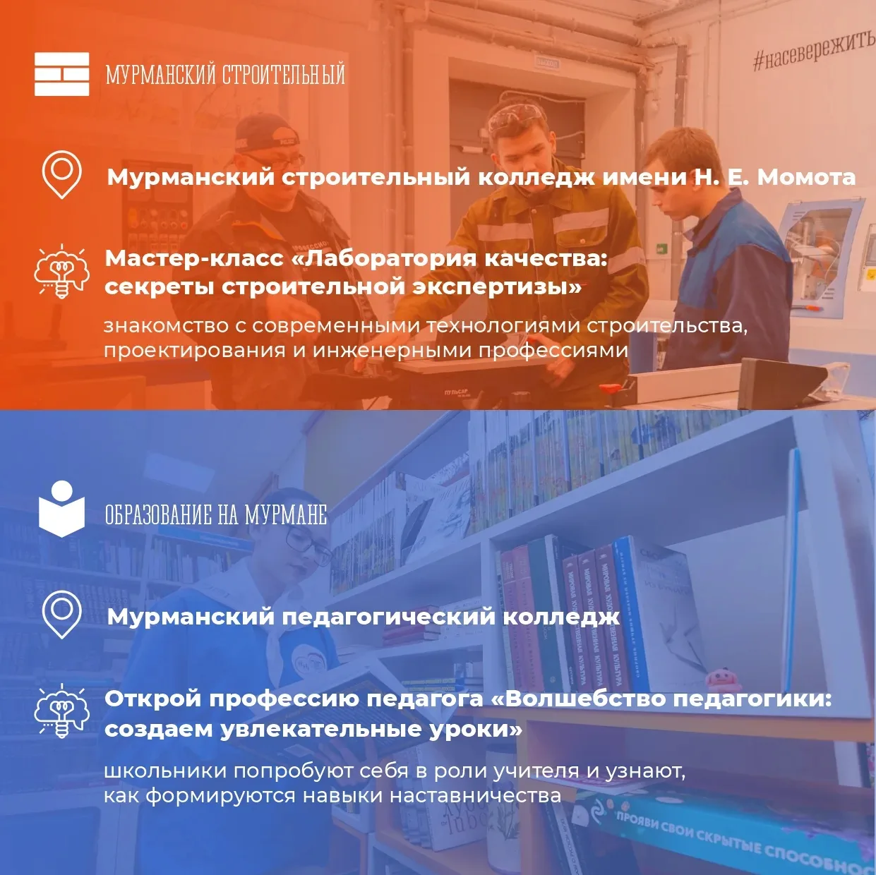 В 10 кластеров проекта «Профессионалитет» вошли 17 колледжей Мурманской области. Что приготовил каждый из них для гостей Единого дня открытых дверей федерального проекта «Профессионалитет»? — листайте карточки!