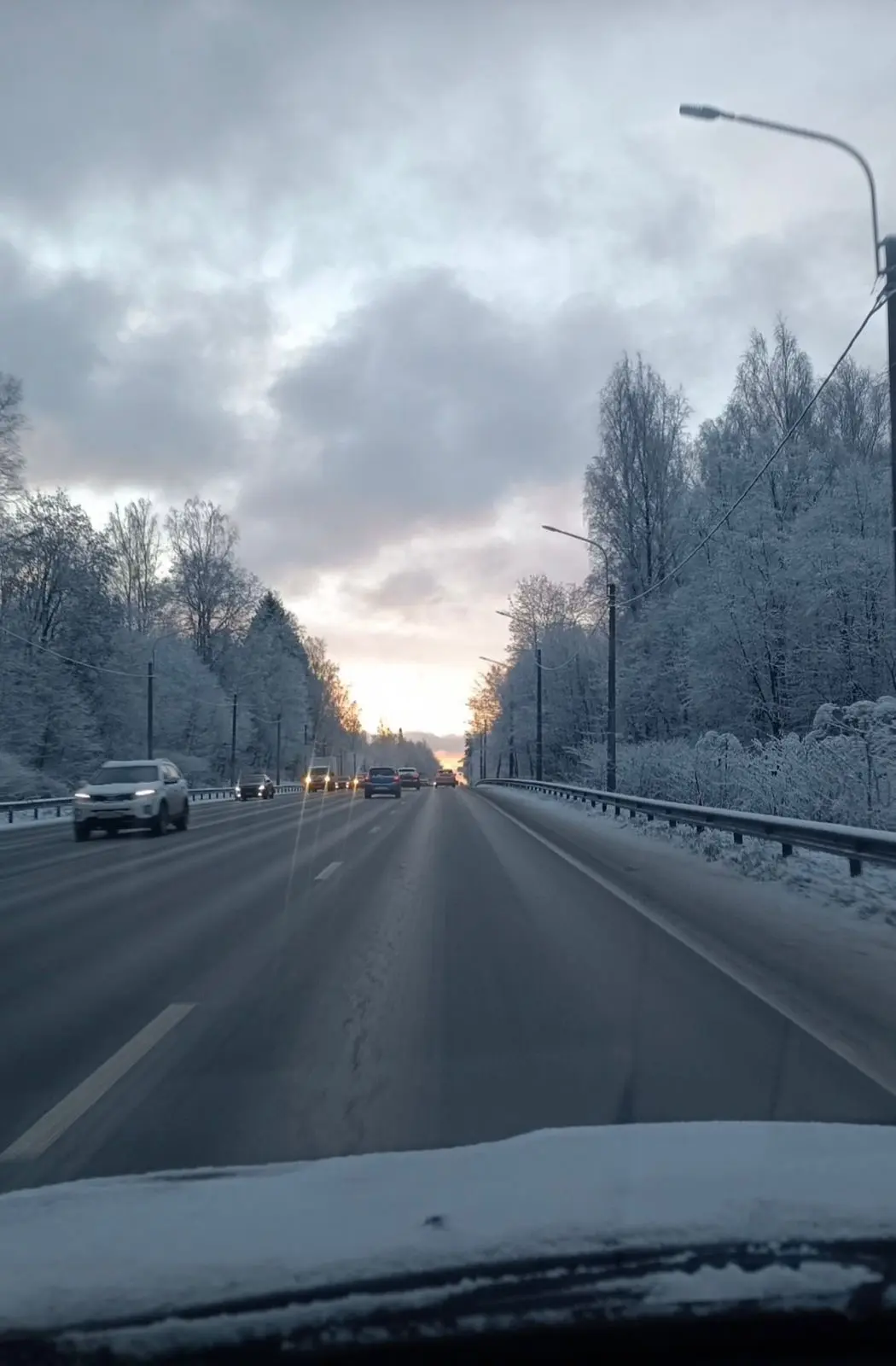 В конкурсе «Зимний пейзажи» свою работу «Московское шоссе в лучах заката» представляет ученик 5 б класса Казимагомедов Ахмед
