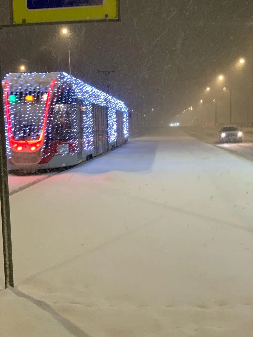В конкурсе «Зимний пейзажи» свою работу «Новогодний трамвай» представляет ученик 2 в класса Исмаилов Мухтар