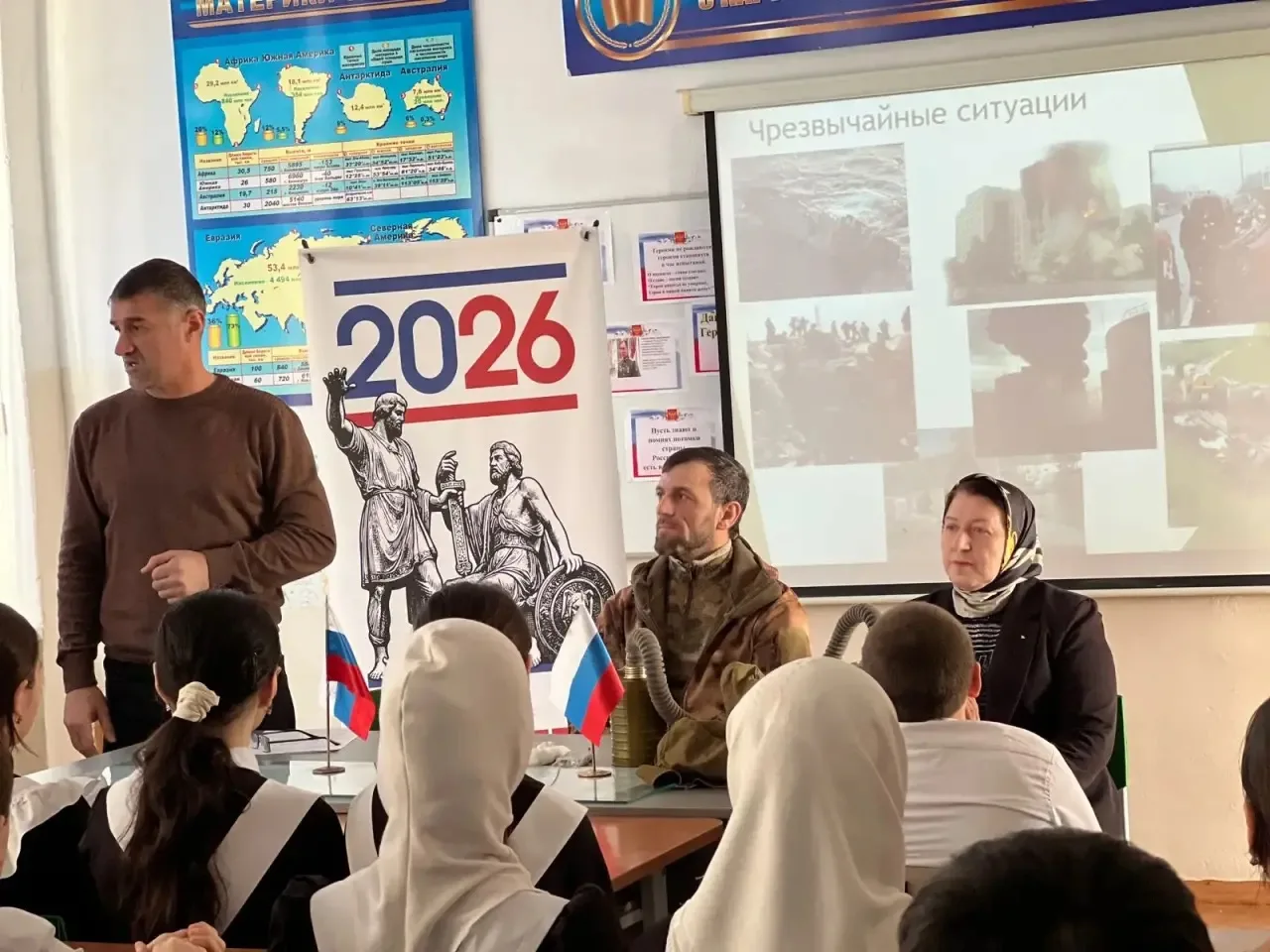 Сегодня, 3 марта, в МКОУ "Новочиркейская СОШ №2" состоялся классный час, посвящённый Всемирному дню гражданской обороны. На мероприятие был приглашён участник специальной военной операции Багатыров Салман Багатарович.