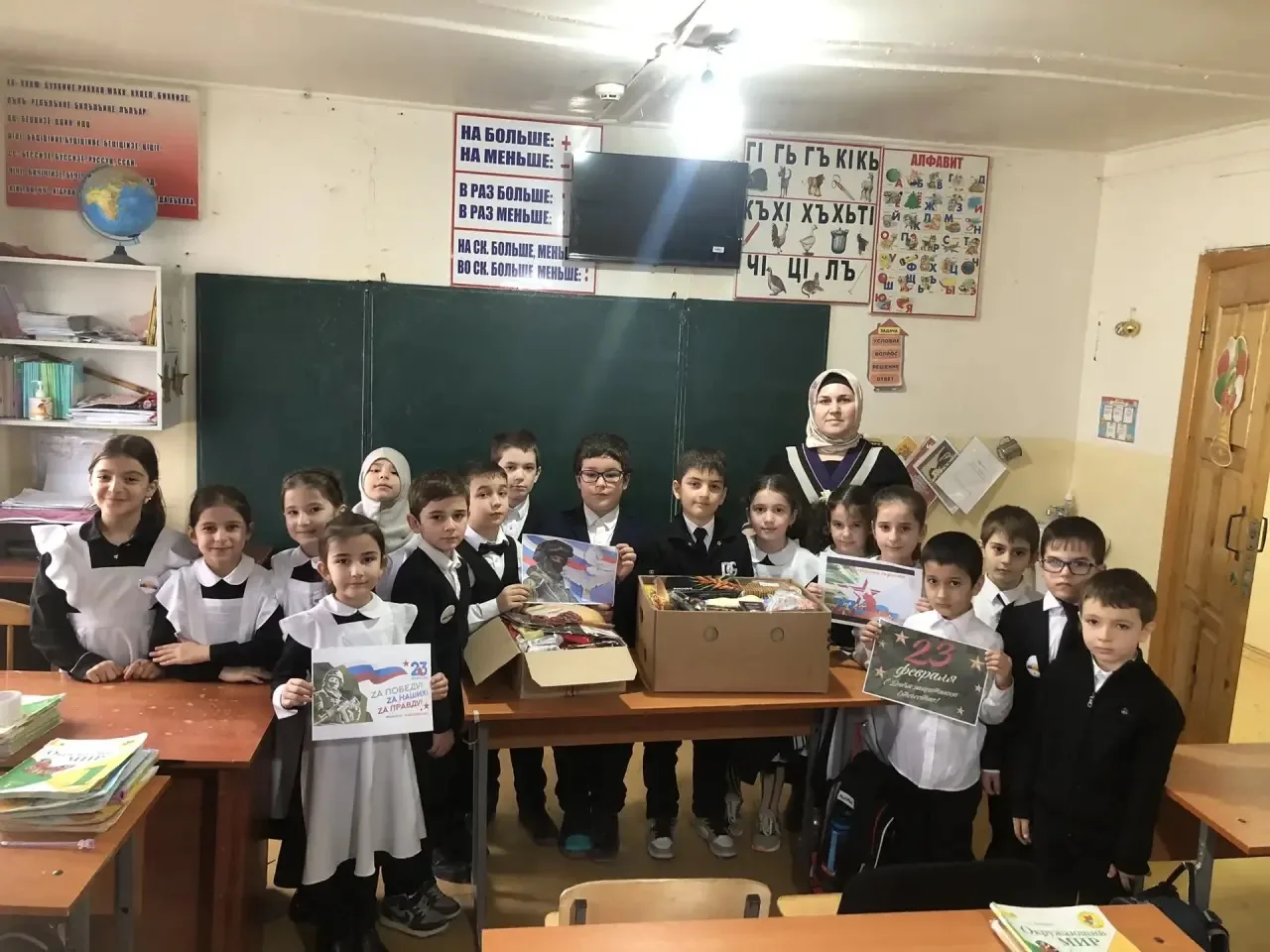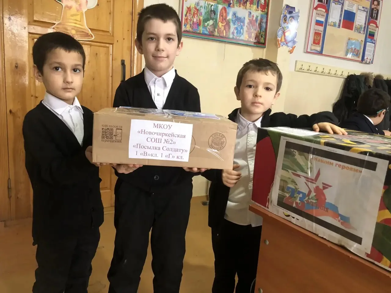 К акции посылка солдату и письмо солдату присоединились 1 в и 1 г классы . Кл рук Мугуева П А и Магомедова П Н