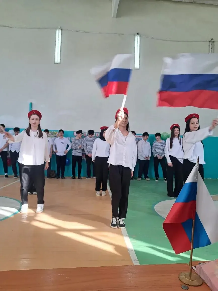 Сегодня в школе прошла еженедельная линейка, которая началась с выноса государственного флага Российской Федерации и исполнения Гимна. Почетное право нести флаг было предоставлено ученикам 8 в класса Омаргаджиеву Абдуле, Уллубиеву Рамазану и Омарову Магомеду.