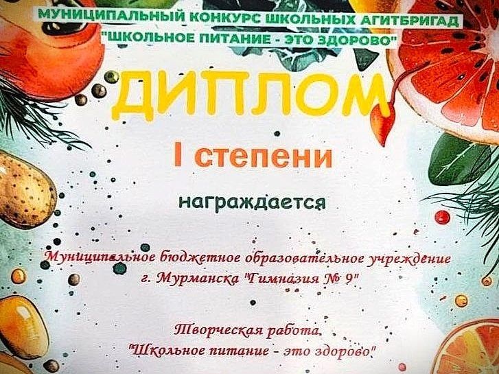 Ребята блестяще справились со своей задачей – убедительно, креативно и с большим энтузиазмом рассказали о ключевой роли сбалансированного школьного питания, а также о неоценимой пользе овощей и фруктов в ежедневном рационе каждого школьника. И вот она, заслуженная награда - почетный Диплом I степени!