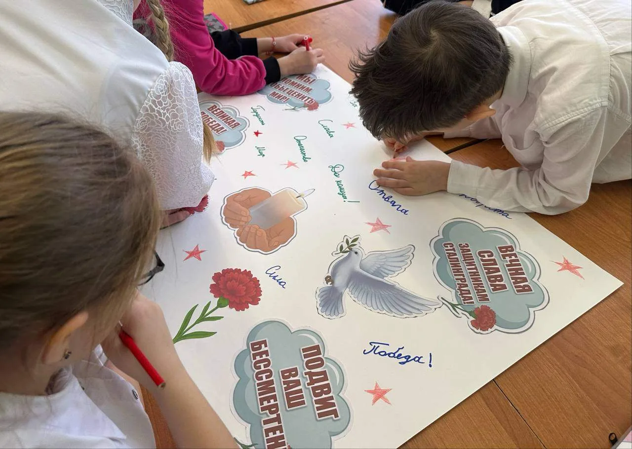 • Мероприятия «Сталинградская битва» и «Сталинград: 200 дней мужества» познакомили младших школьников с подвигами защитников Отечества. Старшеклассники осветили значение ключевого сражения ВОВ, а затем помогли ребятам создать информационные плакаты