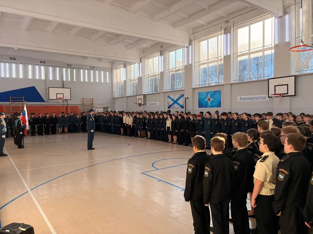 В Кадетской школе города Мурманска прошло торжественное собрание юнармейцев "Единство через расстояние: ЮНАРМИЯ объединяет".