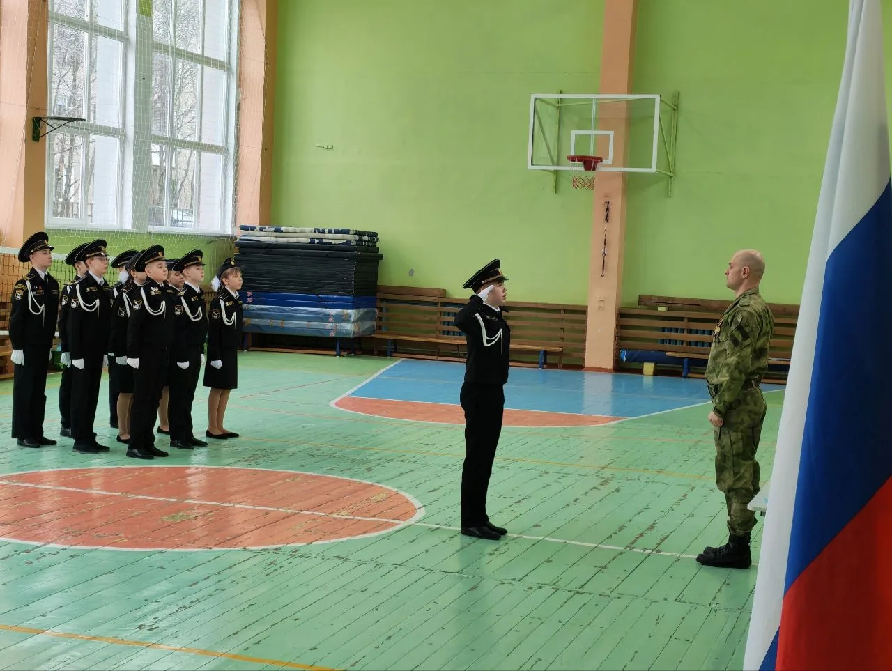Учебная неделя в Кадетской школе традиционно началась с общего построения, выноса Государственного флага🇷🇺 , исполнения Государственного гимна Российской Федерации.