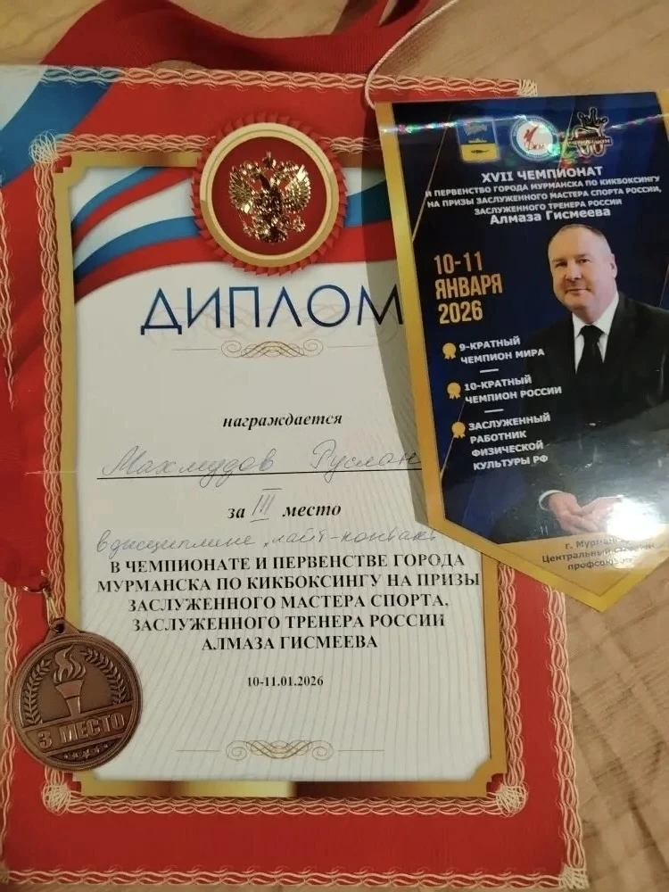 🏆Махмудов Руслан, кадет 5к3 класса, стал призёром 🥉чемпионата города Мурманска по кикбоксингу!