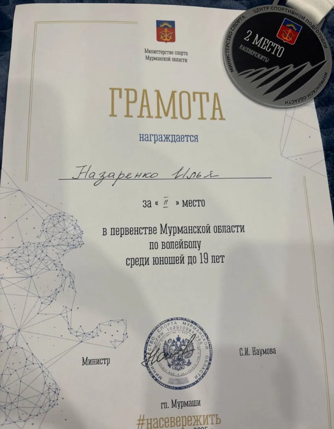 Назаренко Илья,обучающийся 11к1 класса, завоевал серебро🥈на Первенстве Мурманской области по волейболу среди юношей до 19 лет!