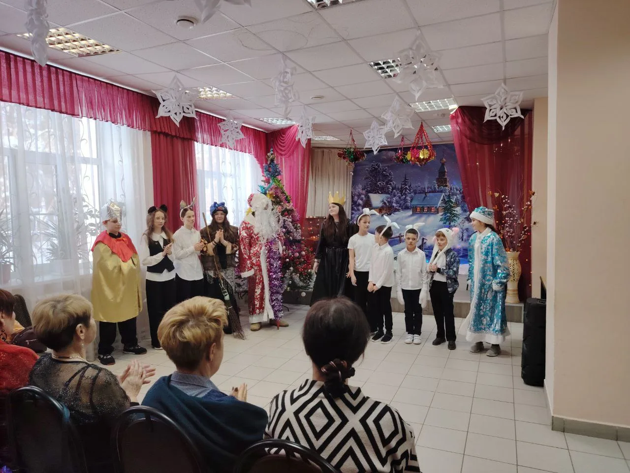 В преддверии Дня студента, когда ощущение праздника еще витает в воздухе, участники театрального кружка нашей школы( руководитель Кайдова И. В.)подарили финальное, но оттого не менее яркое, новогоднее представление. Их зрителями стали отдыхающие «серебряного возраста» в отделении дневного пребывания Комплексного центра социального обслуживания населения Балахнинского муниципального округа.