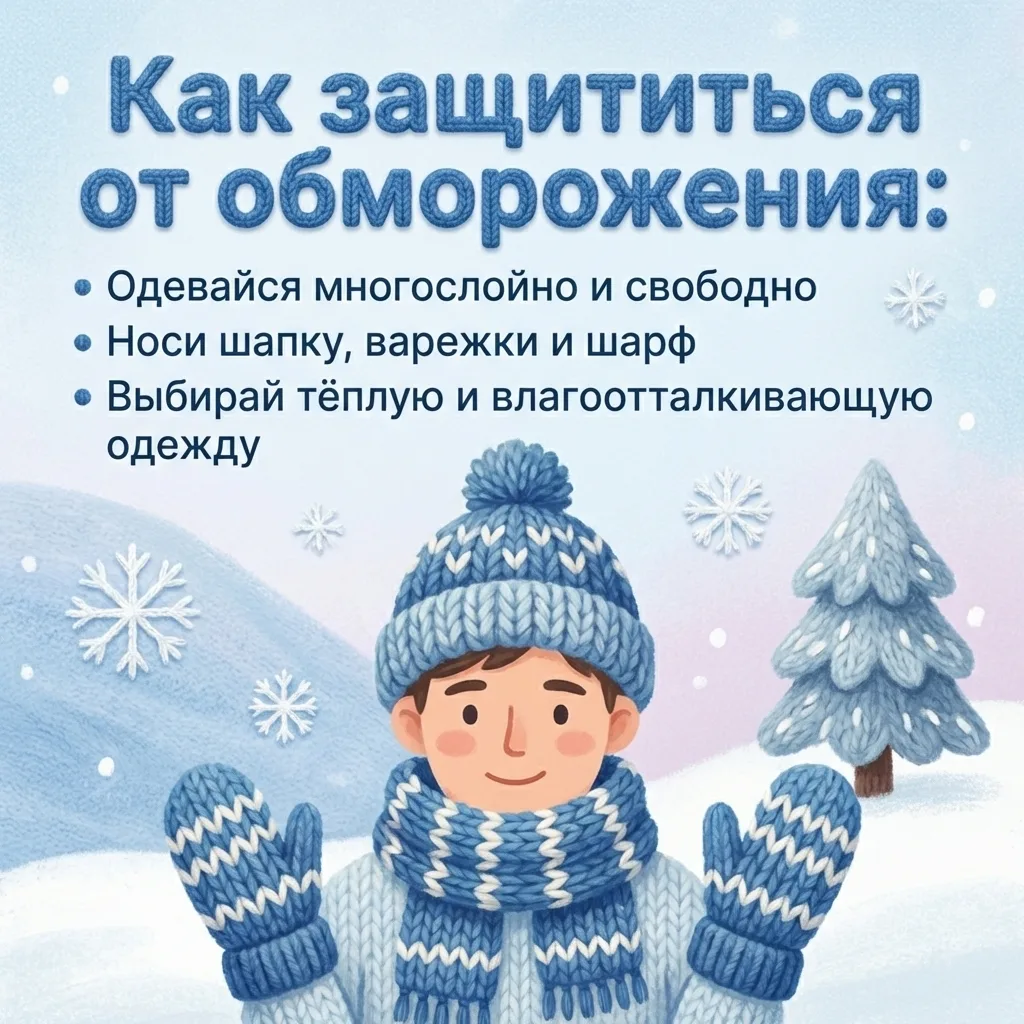 ❄️ Зима — это красиво, но мороз может быть опасен! Управление Роспотребнадзора по Нижегородской области напоминает, что обморожение повреждает кожу и конечности, а его риск повышают тесная одежда, влажная обувь, неподвижность, усталость и болезни.