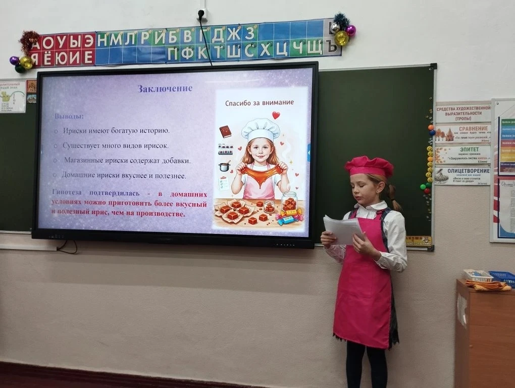 *Елкина Ева, ученица 3" д" класса с работой "Молекулярная кухня", руководитель Каменская О. В.