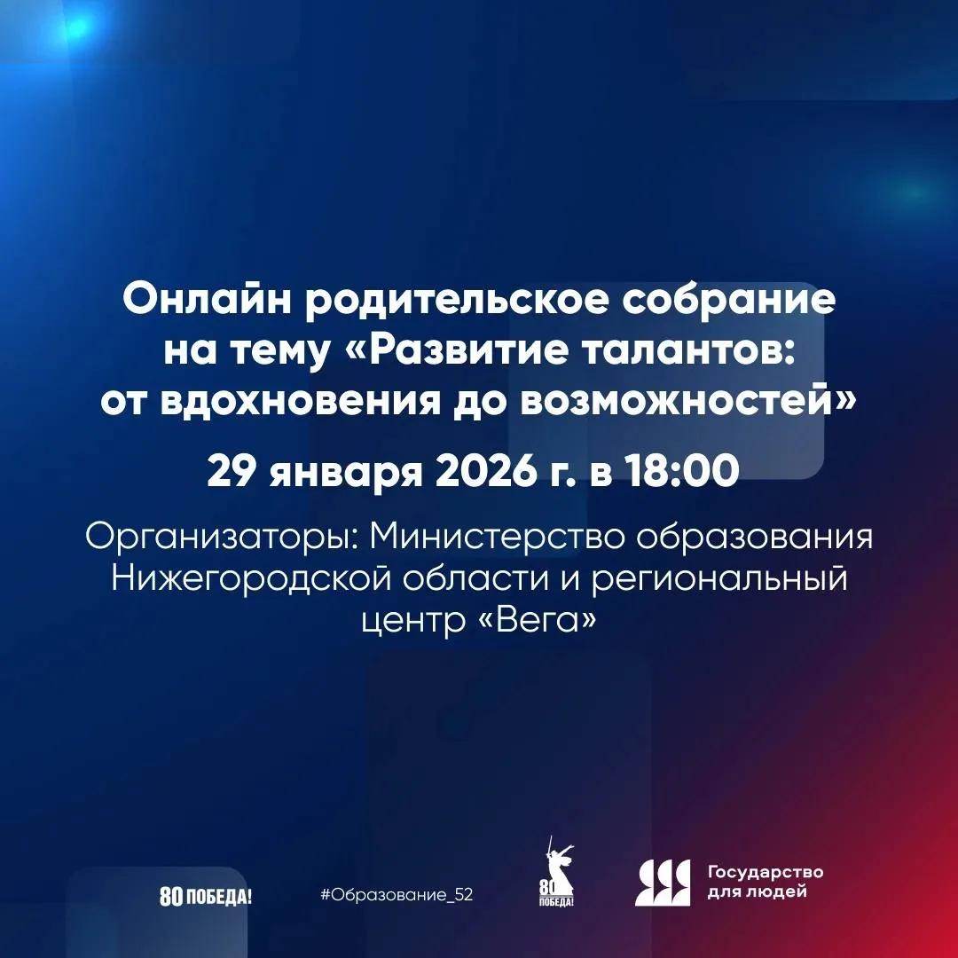 Родительское собрание «Развитие талантов: от вдохновения до возможностей» пройдёт 29 января 2026 г. в 18:00 в формате онлайн.