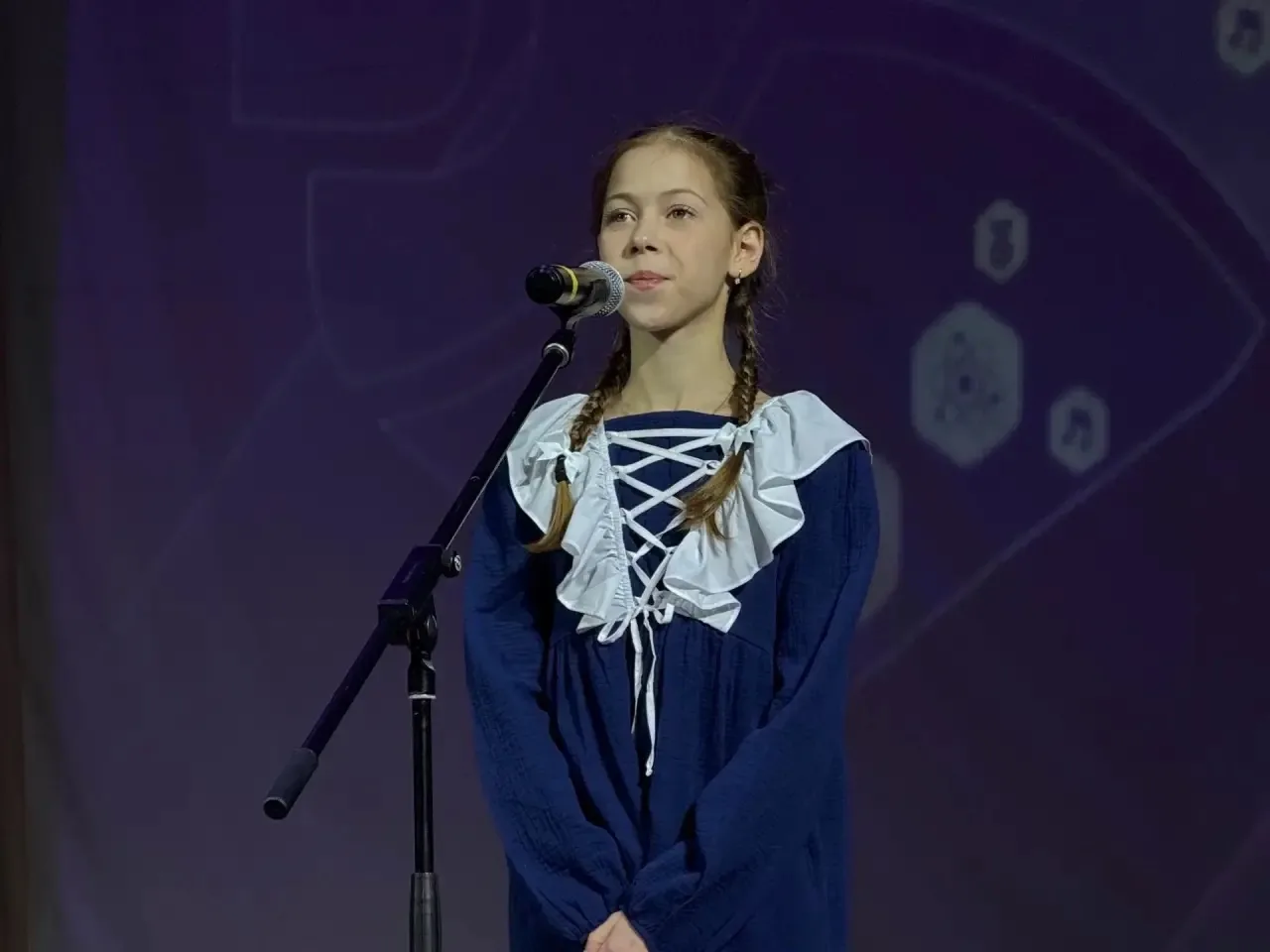 Юная чтица прочла произведение «Провинциальный городок» борской поэтессы и писательницы Валентины Владимировны Савельевой и была удостоена высшей награды — 🏆гран‑при конкурса!