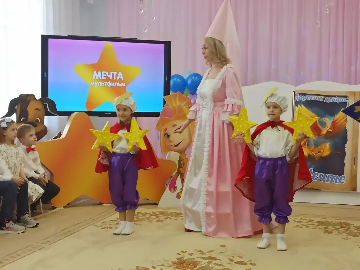 Наш МультФестиваль превратился в настоящее приключение! Вместе с Феей Добра и Хранительницей царства мультфильмов ребята отправились в путь по страницам книги сказок «Дорогою добра к мечте». В ходе путешествия они помогли зажечь четыре волшебные звезды: