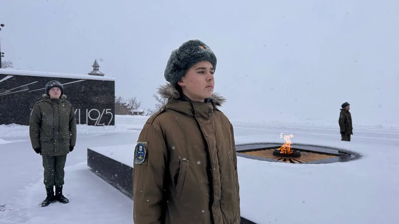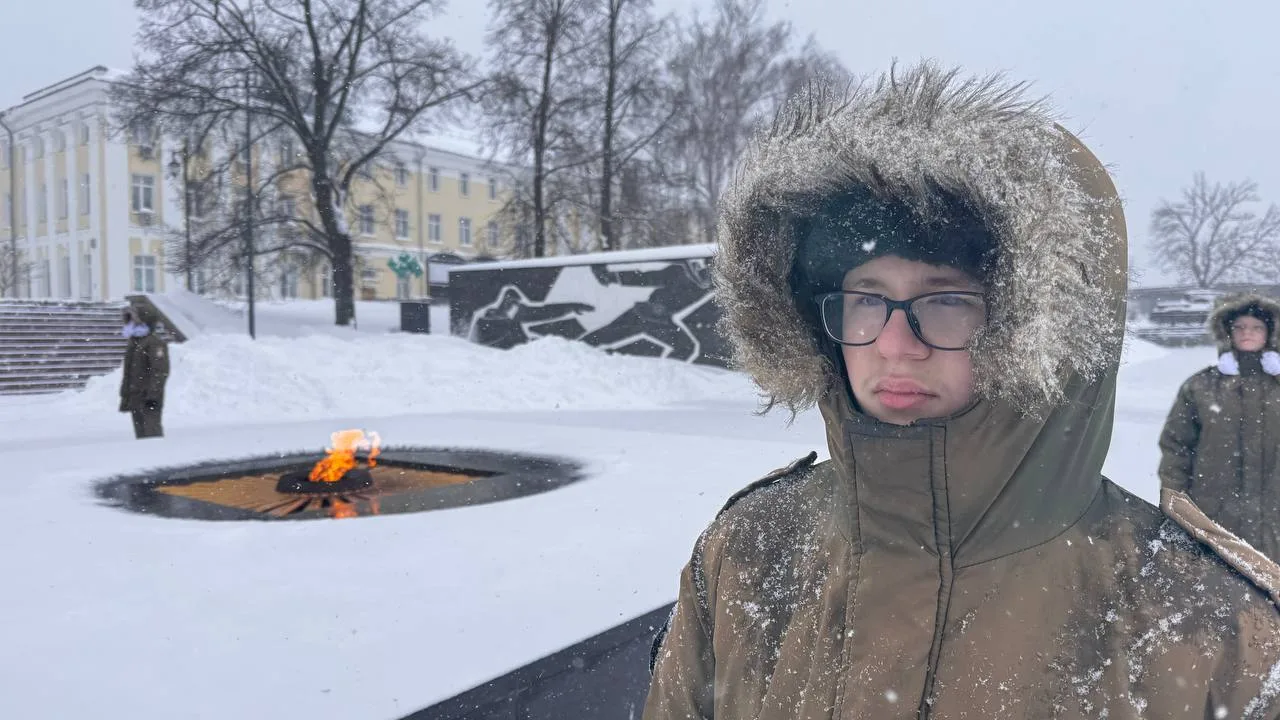 Несмотря на непогоду, наши юные патриоты с гордостью и уверенностью уже второй день несут Вахту Памяти на Посту №1 у Вечного огня Славы в Нижнем Новгороде!