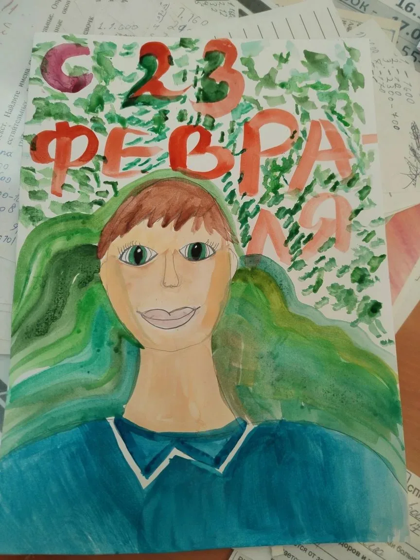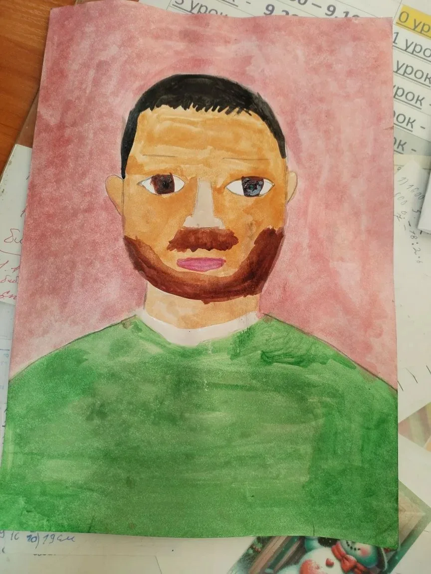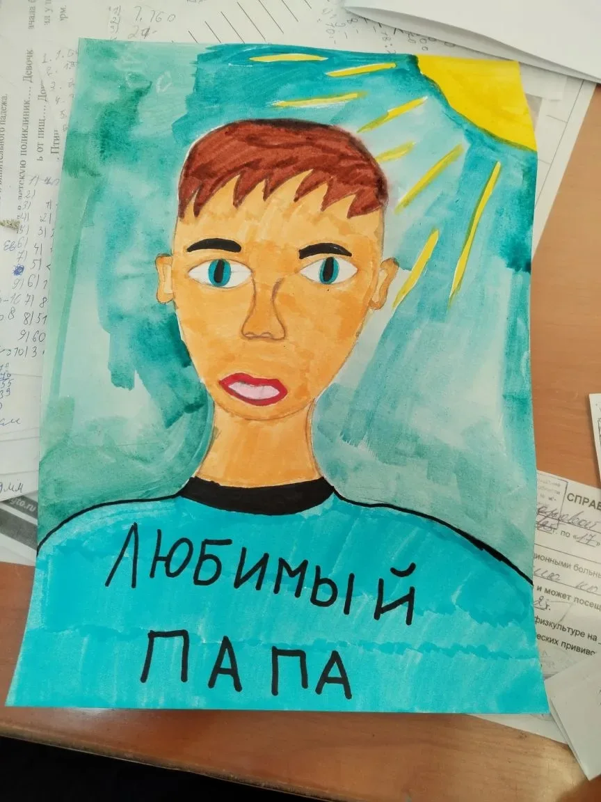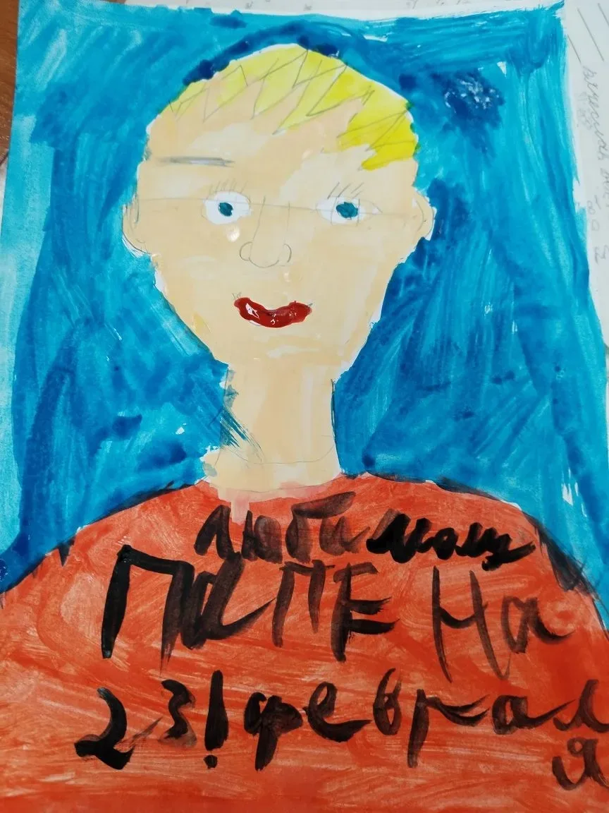 Ребята 4б класса приготовили папам подарок. Рисунок-портрет вручили дети своим отцам в праздничный день Защитника Отечества.