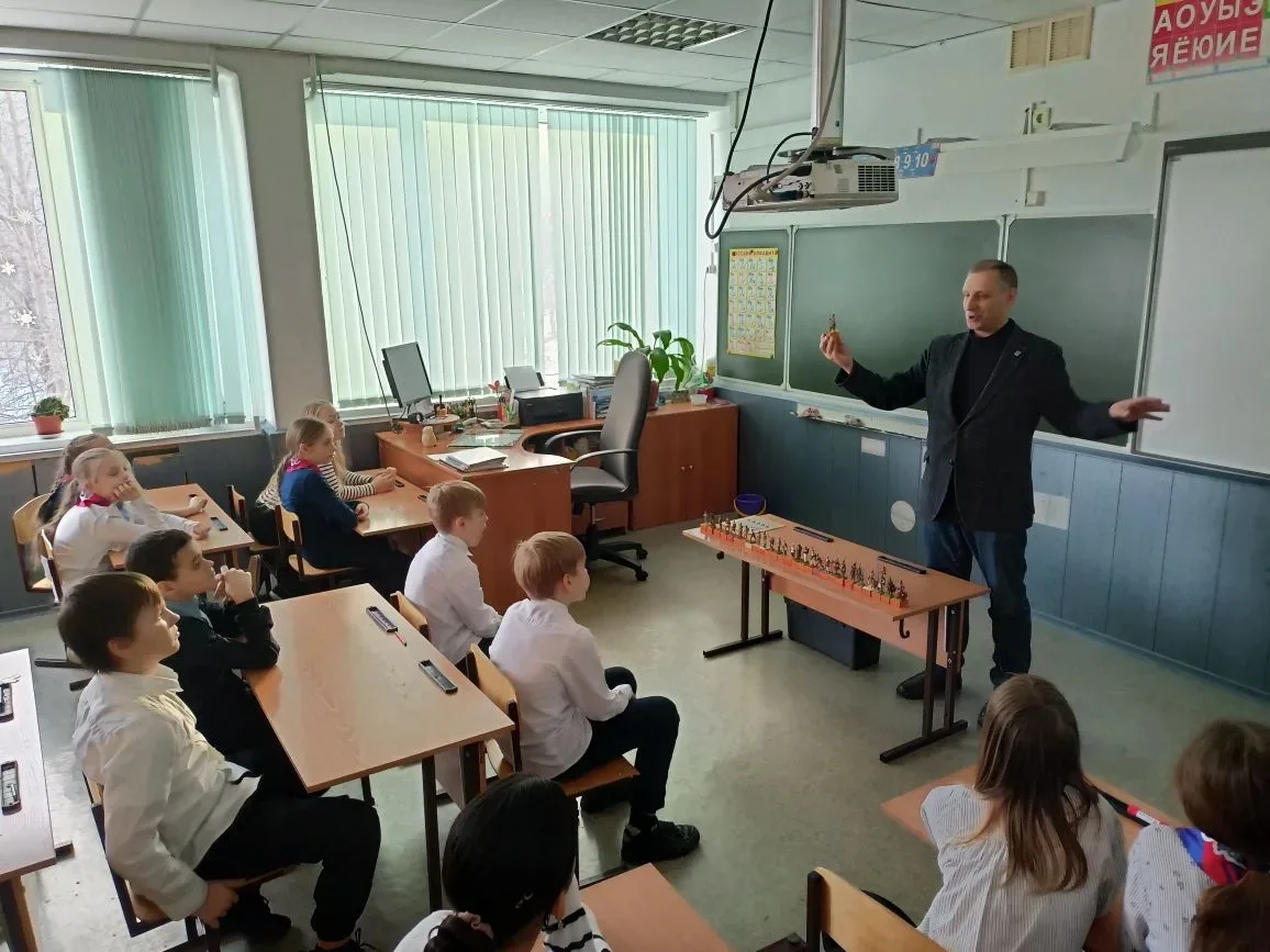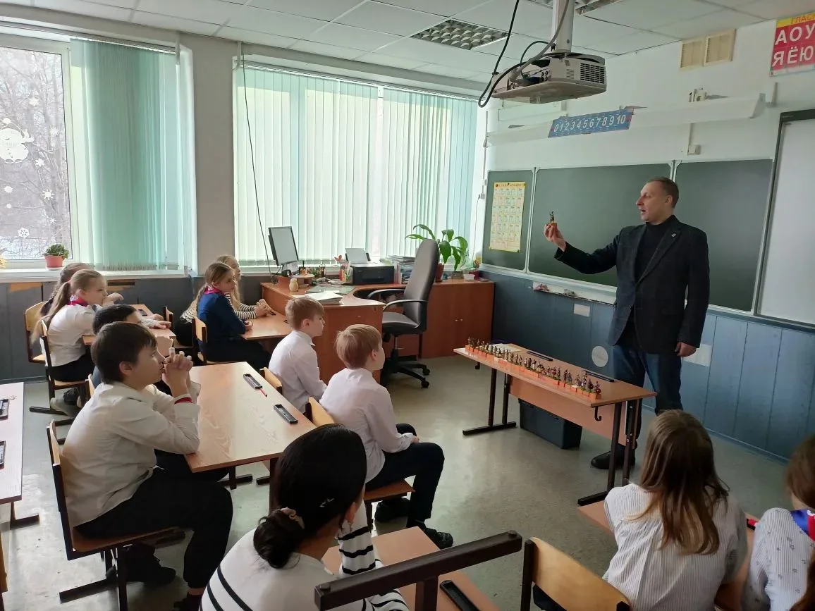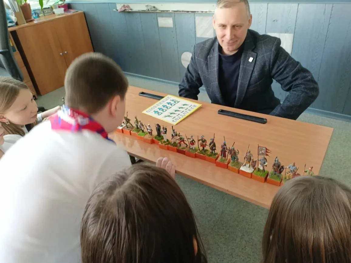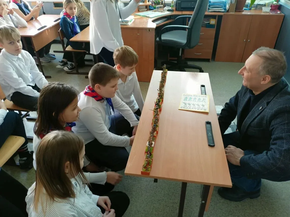 Ребята познакомились с личной коллекцией миниатюр оловянных солдатиков Алексеч Сергеевича, а также узнали о том, как менялась форма защитников нашего Отечества.