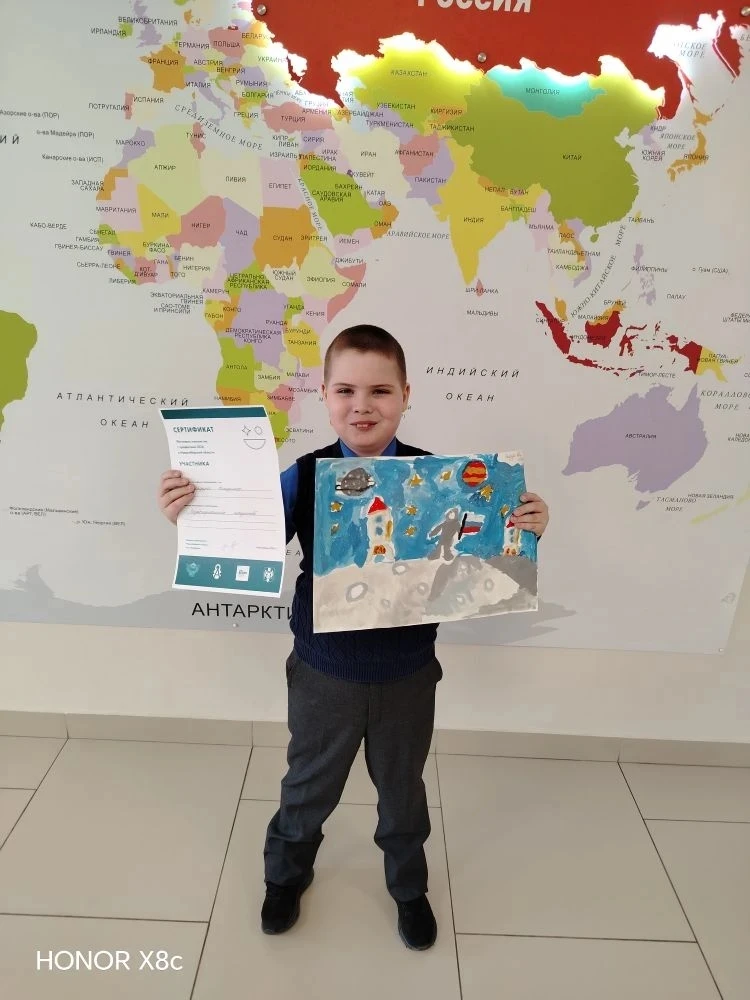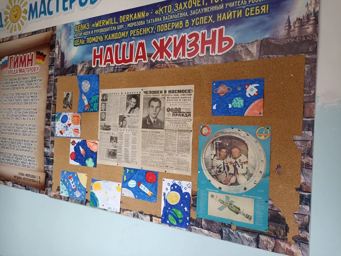 С 6-10 апреля в школе прошла Неделя Космоса, приуроченная к 65-летию полёта в космос Юрия Алексеевича Гагарина. Традиционно на первом уроке в понедельник «Разговоры о важном» учащиеся узнали об историческом пути и современном состоянии космической отрасли в наши дни. На занятиях «Россия мои горизонты» о профессиях, связанных с космонавтикой. На уроках музыки и занятиях хора познакомились с вокально-инструментальным циклом песен «Созвездие Гагарина». Воспитанники «Города Мастеров» перевели на немецкий язык статью о первом космонавте Ю.А. Гагарине.