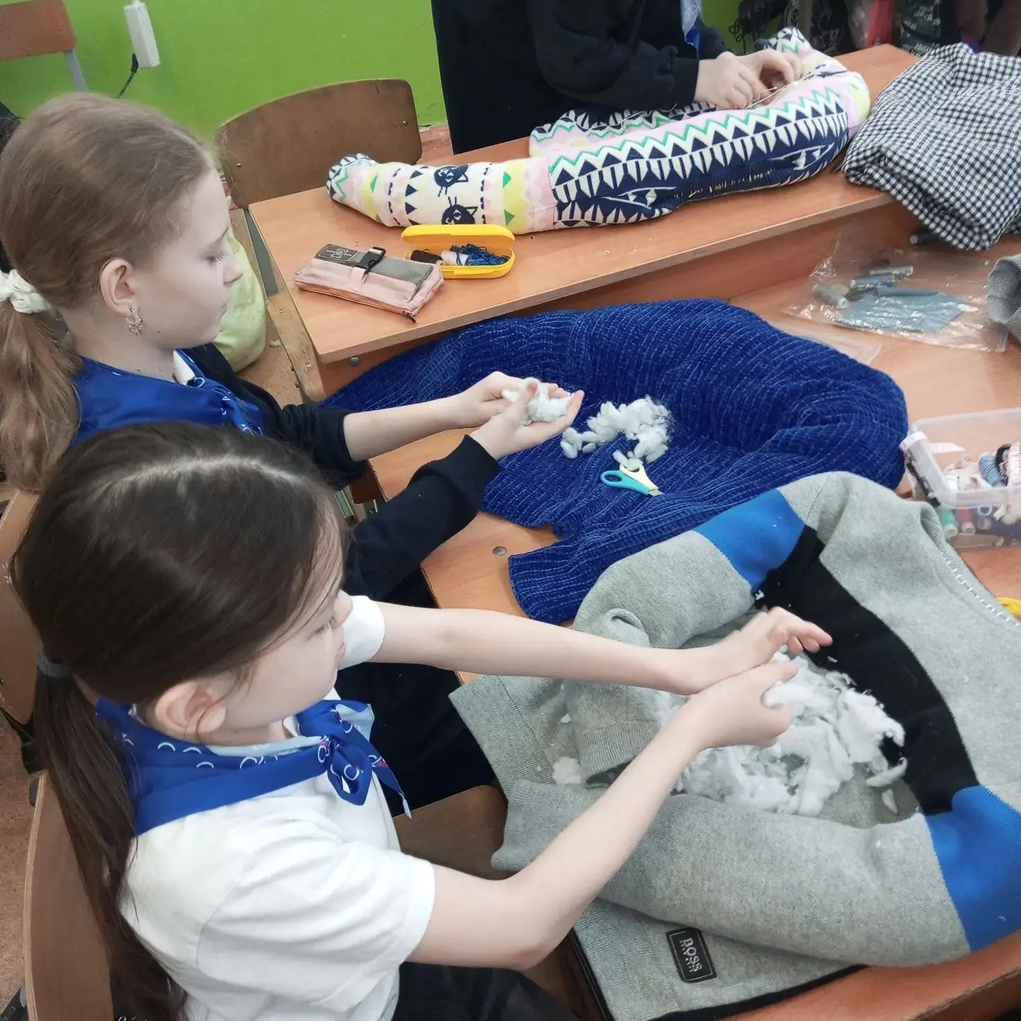 На очередном занятии команда ЮИД (руководитель Шупикова Светлана Павловна) решили присоединиться к международной акции День добрых дел, которая проходит по всему миру 15 марта. Ребята решили провести актуальный весенний разбор гардероба и сделать из вышедших из употребления свитеров лежанки для животных.