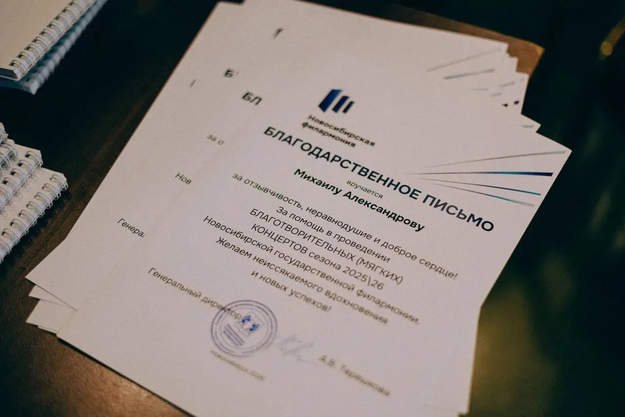 Для Миши волонтерская деятельность началась с Летнего детского фестиваля «Когда не надо в школу» 1 июня 2025г. В 2025/2026г филармоническом сезоне он принимал активное участие в мягких концертах, готовится к следующему Летнему детскому фестивалю в Камерном зале. Миша награжден благодарственным письмом, получает баллы на сайте «Добро.ру». Отрадно и радостно, что ученики нашей школы помогают в организации концертов в Новосибирской филармонии http://phil-nsk.ru/, крупнейшей концертной организации страны!