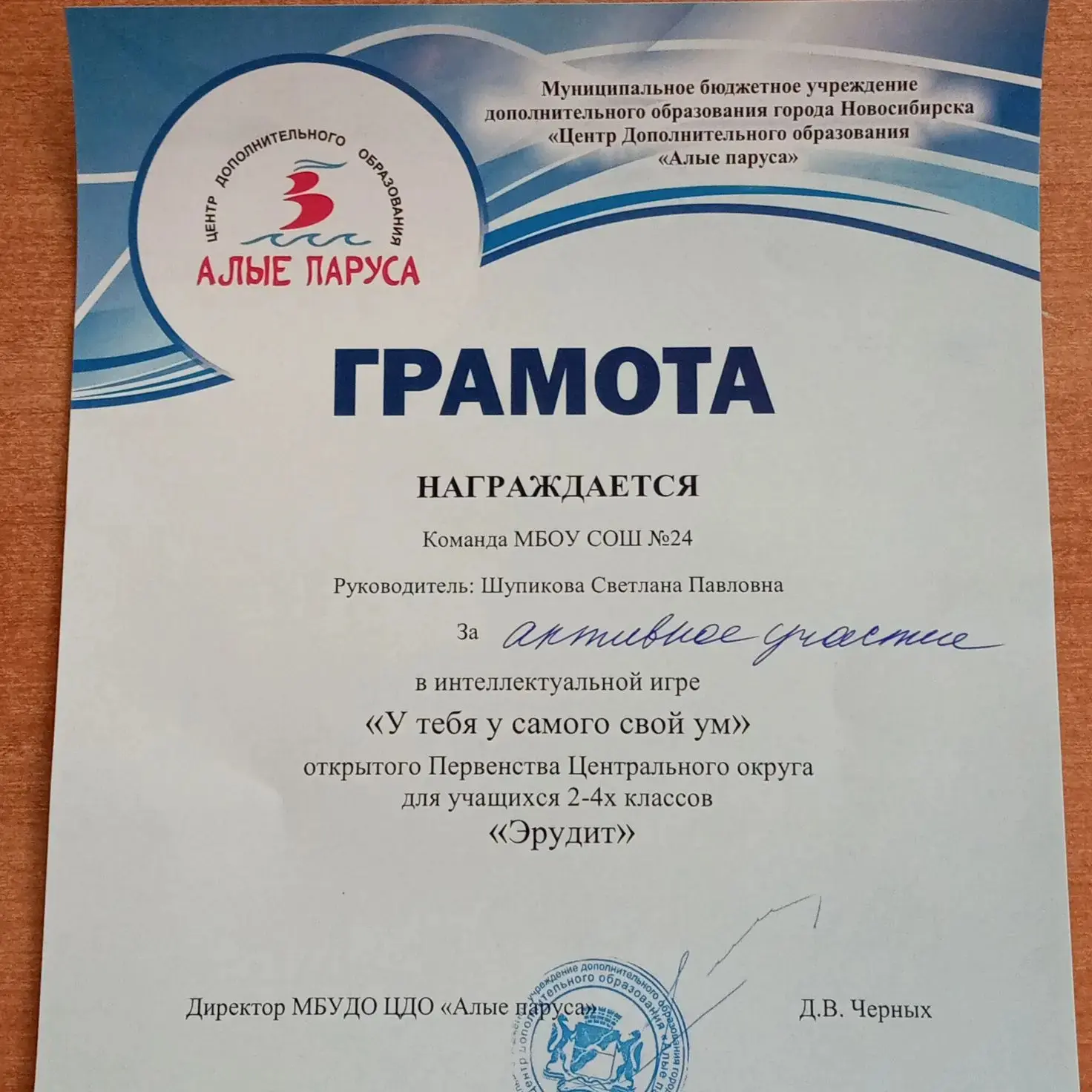 Команда интеллектуальных игр начальных классов "Нарядные пятёрки" (руководитель Шупикова Светлана Павловна) завершила участие в трёхлетнем марафоне игр "Эрудит" Центрального округа. Ребята были активными участниками всех первенств. В следующем году будут новые игры уже в другой возрастной группе "Живое слово", ну а маленьких эрудитов-новичков ждут свои победы! Принимайте эстафету, друзья 🥇!