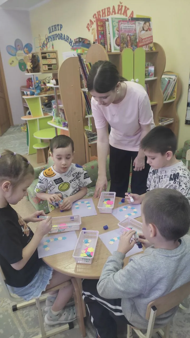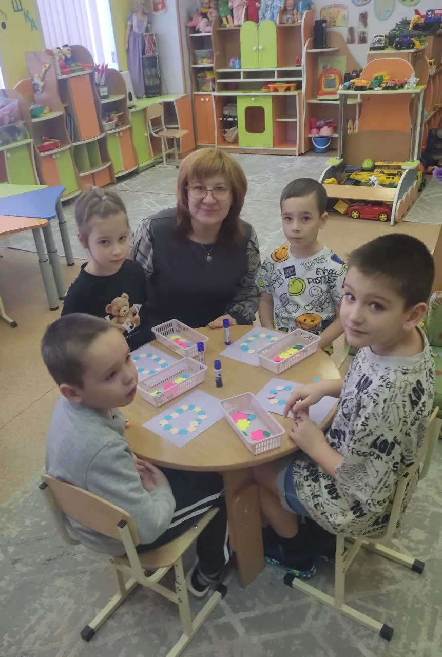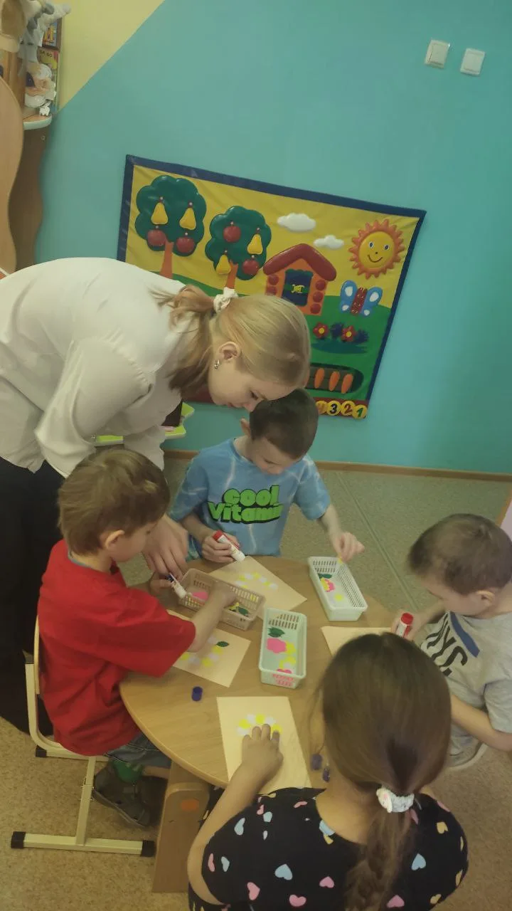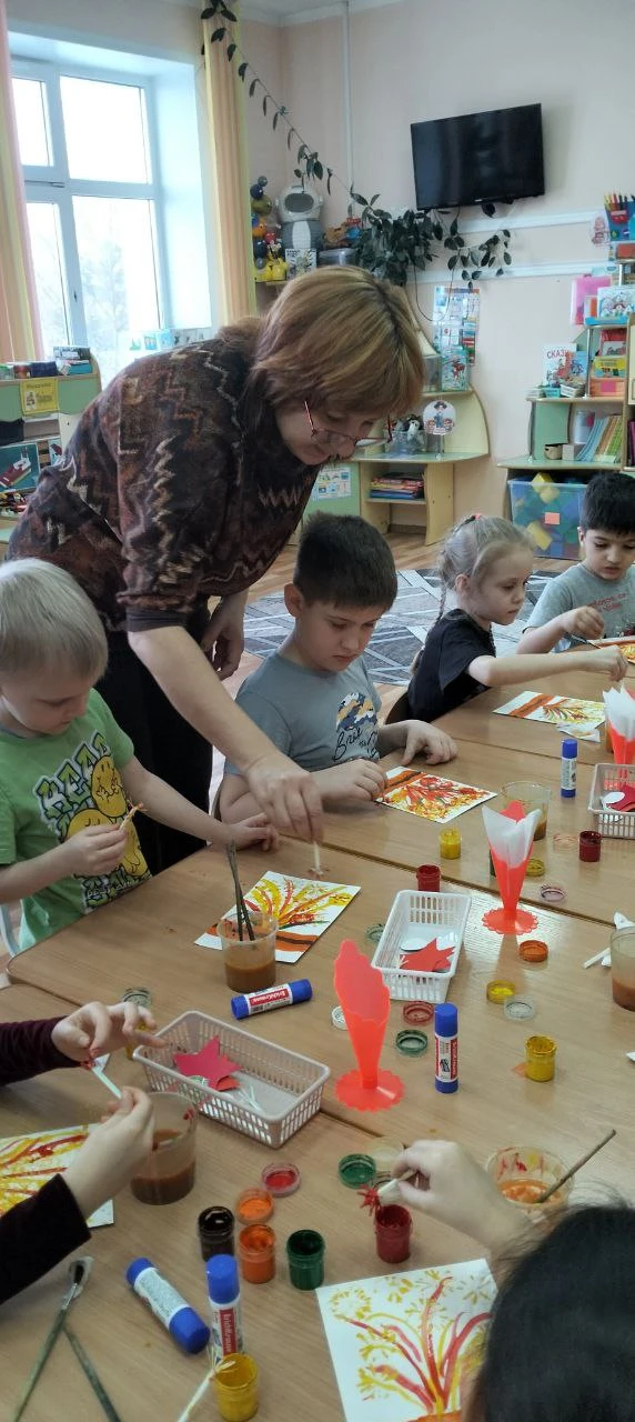 Ребята с увлечением осваивали необычную творческую технику: сочетали аппликацию с кляксографией, используя трубочки для коктейлей. Каждый ребёнок вложил частичку души в свою работу — открытки получились по‑настоящему особенными!