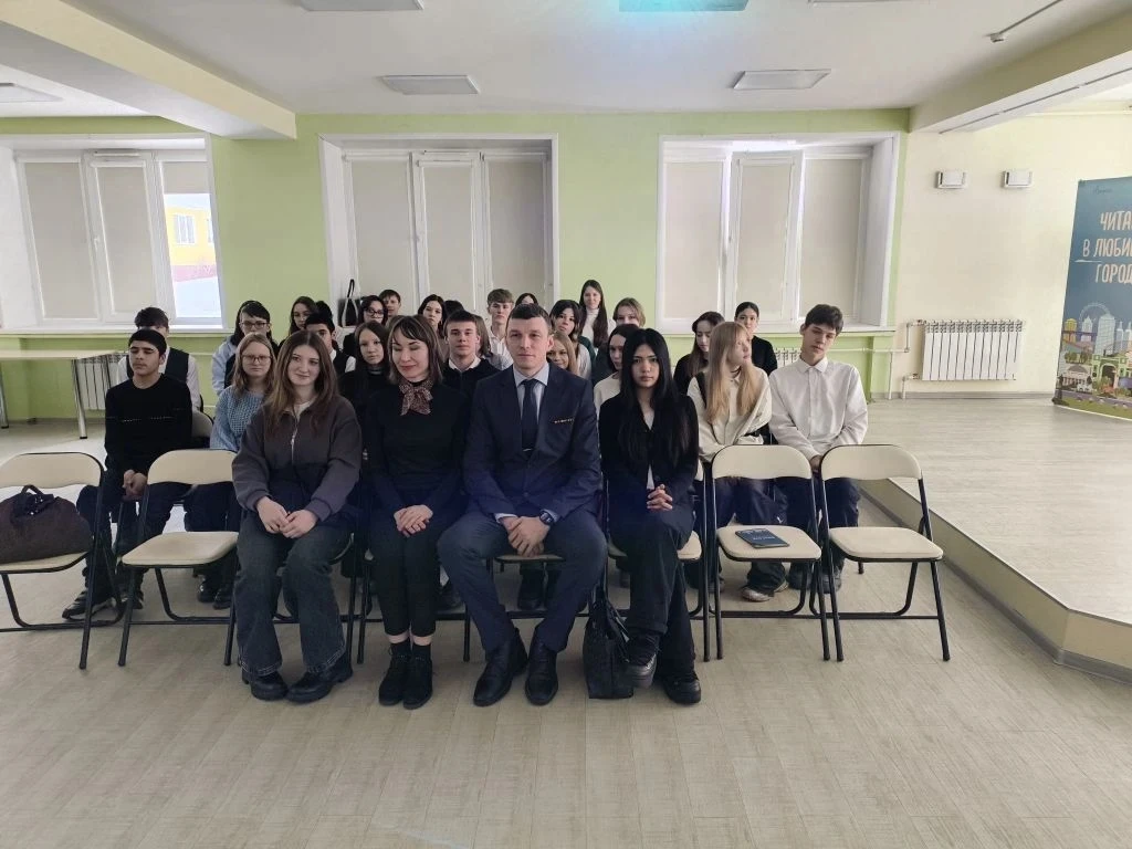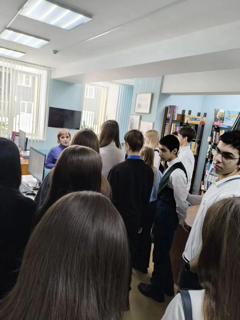 3 марта девятиклассники сходили в библиотеку им. Горького. Кроме экскурсии, ребята стали участниками «Урока мужества» и лично пообщались с героем — участником СВО.