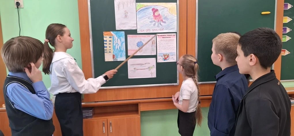 На этой неделе в 4 «А» классе прошел важный и полезный урок. Ребята вместе со своим классным руководителем Гульнарой Даврановной обсудили правила безопасности на льду.