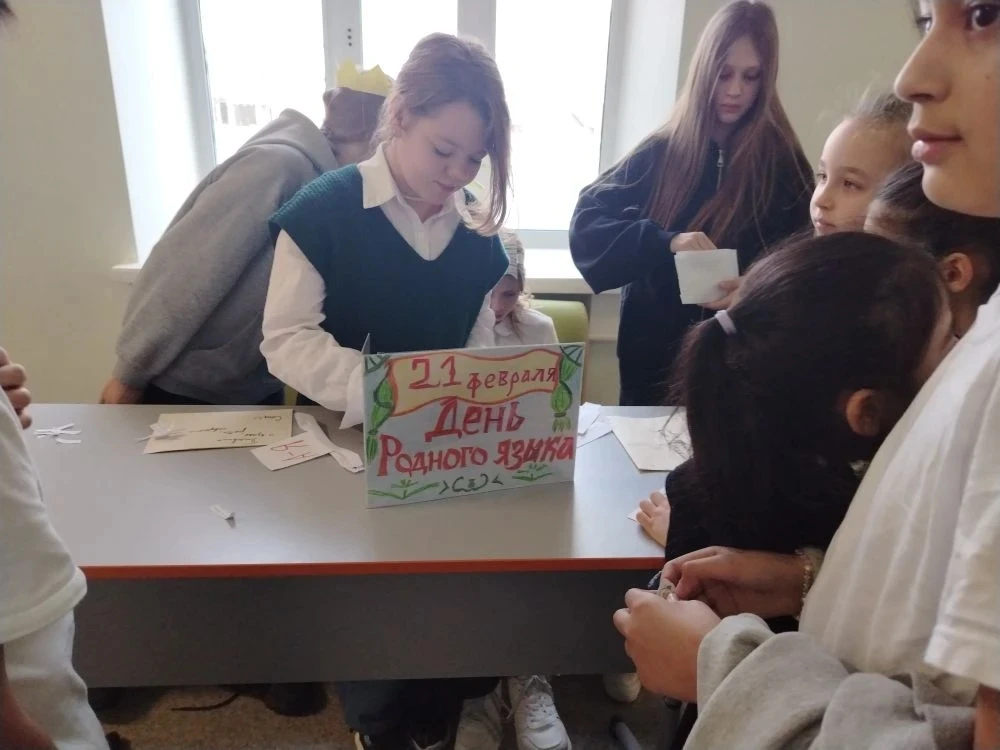 На переменах волонтеры организовали лингвистические станции: "Угадай героя сказок", "Собери пословицы ", "Слова - самоцветы". В средней и старшей школе ребята провели тестирование "Проверь свою грамотность".