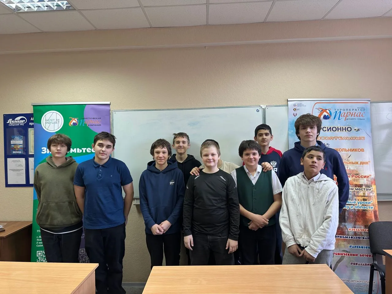 В рамках профориентационного проекта „Билет в будущее“ учащиеся 7 «А» и 7 «Б» классов приняли участие в мастер‑классе по разработке экскурсионных программ. Мероприятие направлено на развитие коммуникативных навыков и знакомство с профессиями туристической сферы.